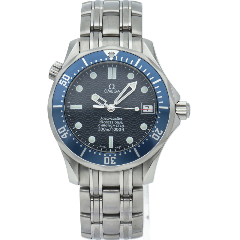 商品説明:オメガを代表する人気ダイバーズウォッチ「シーマスター」。300mの防水性能を備え、文字盤には青い波の模様が入った実用性の高いベーシックなモデルです。