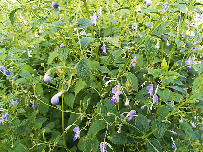 ●山の谷沿いの草地にはえる多年草 8~9月、枝先に青紫色の花をつける 高さは1m位