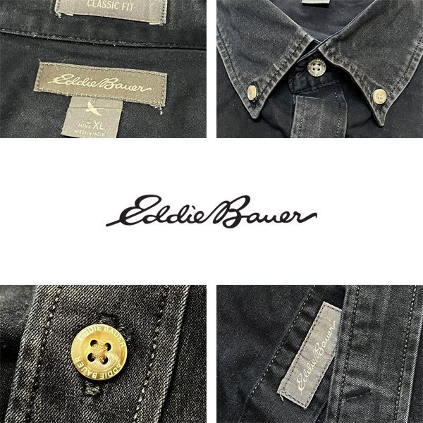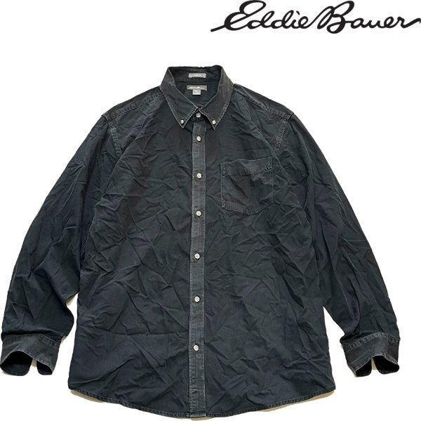1点物◆エディーバウアー長袖ビッグサイズ無地黒シャツ古着メンズXLレディースOKアメカジ90sストリート/スポーツアウトドアブランド349877