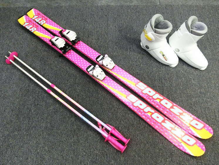 1572★スプラッツォ 148cm★中古3点セット/子供スキー/ブーツ24-25cm/チューンナップ済み/ビンディング設定(無料)