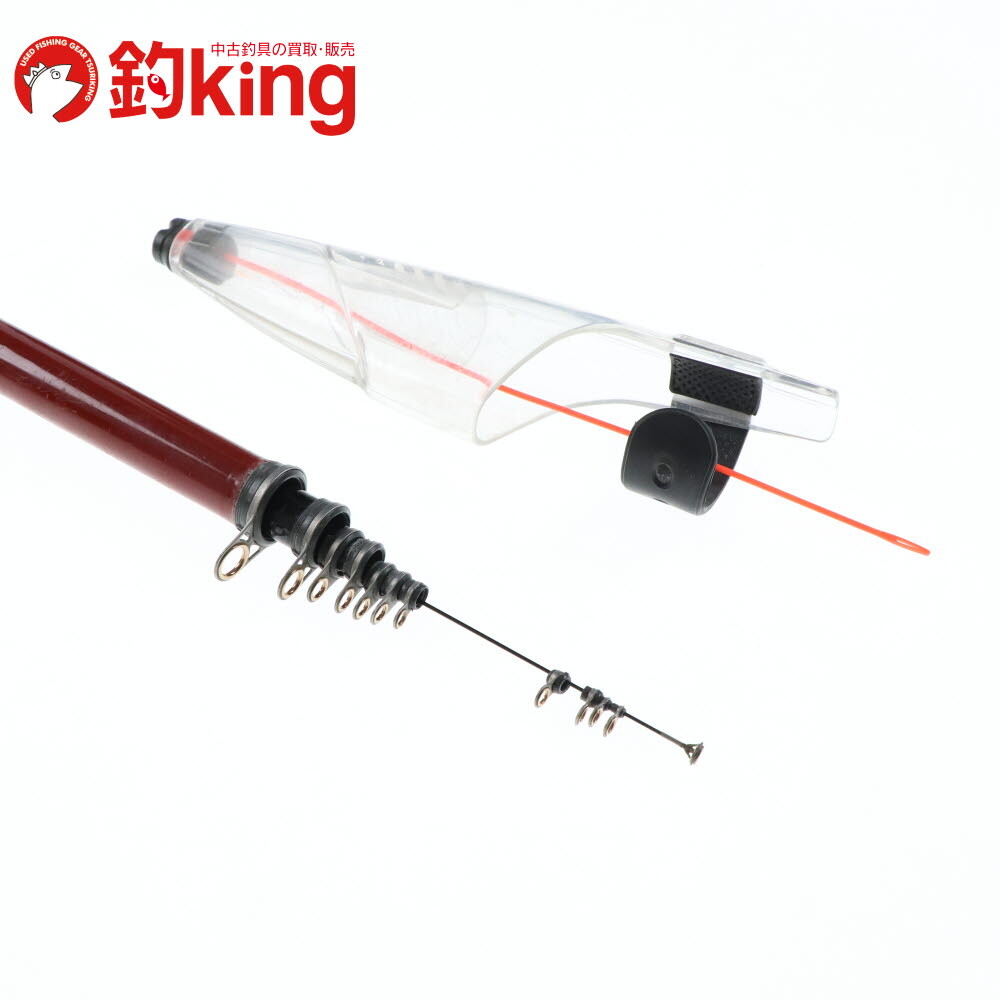 □標準全長:5.3m □標準自重:205g □カーボン含有率:99% □モーメント:26.5 □継数:5本 □先径:0.9mm □元径:24.2mm □錘負荷:2-5号 □適合ハリス:1.5-5号 □仕舞寸法:115.5cm |
