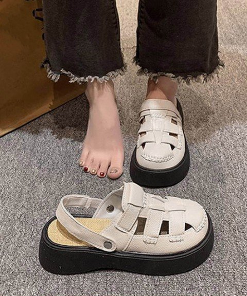 編み込み風のデザインが施されており、カジュアルながらも個性的な印象を与える2WAY厚底サンダル