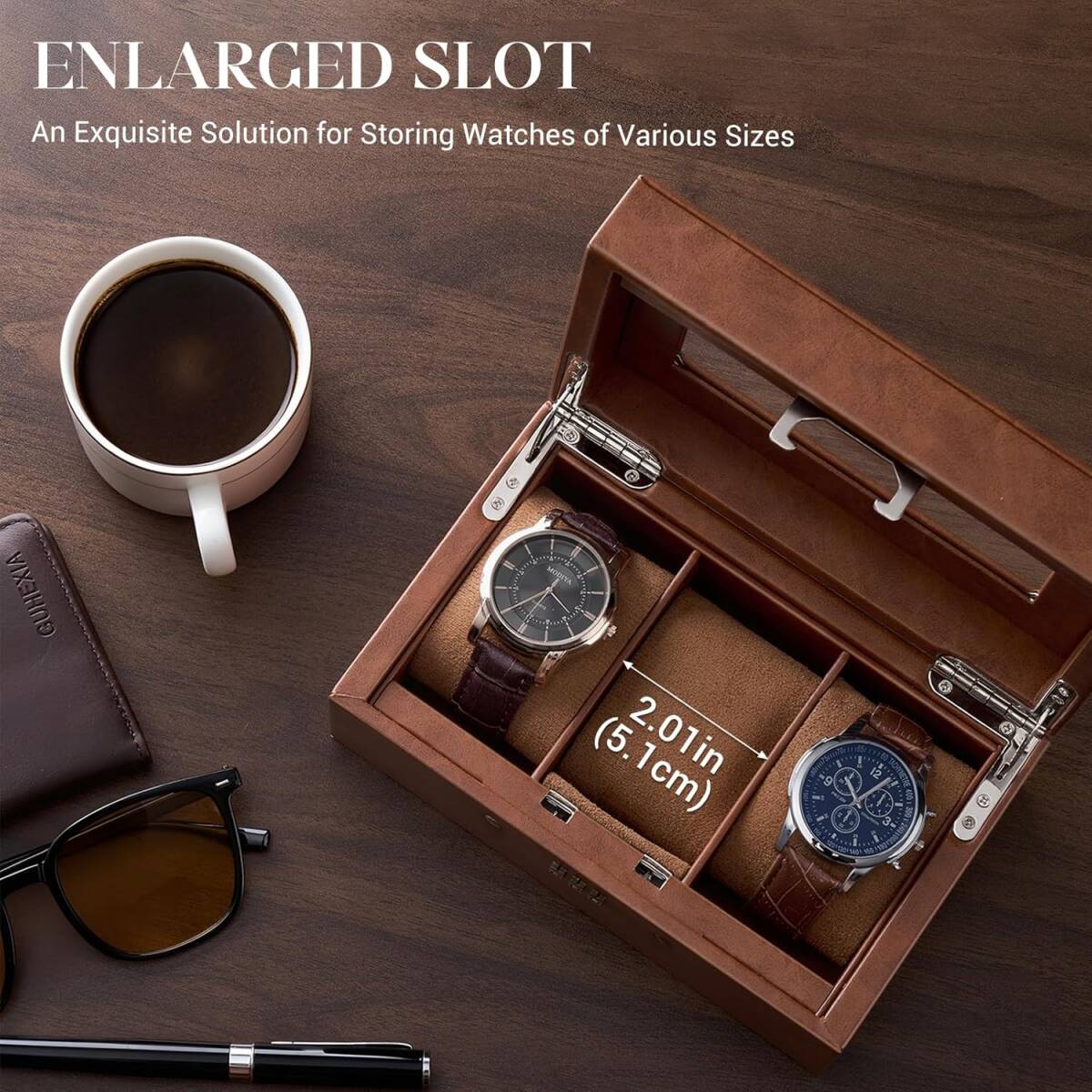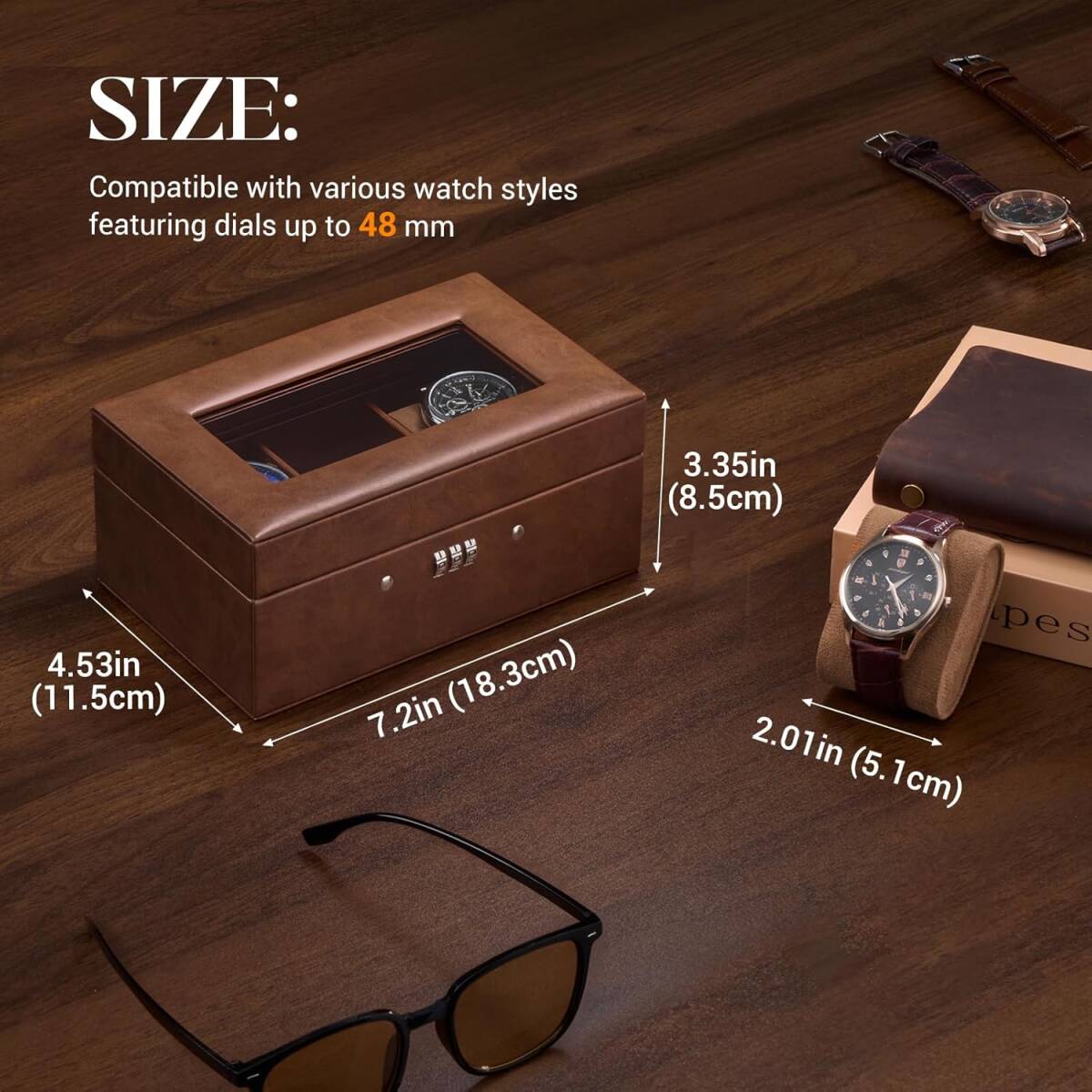 腕時計ケース ウォッチボックス ディスプレイ収納ケースブラウン 3本 男性用 パスワードロック付き 時計オーガナイザー ガラス天板