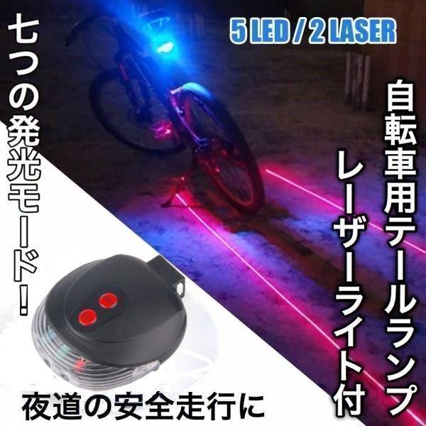2個セット 自転車用 レーザーフラッシュライト 5色レインボー テールランプ テールライト LED リアライト 警告灯 白色搭 送料無料