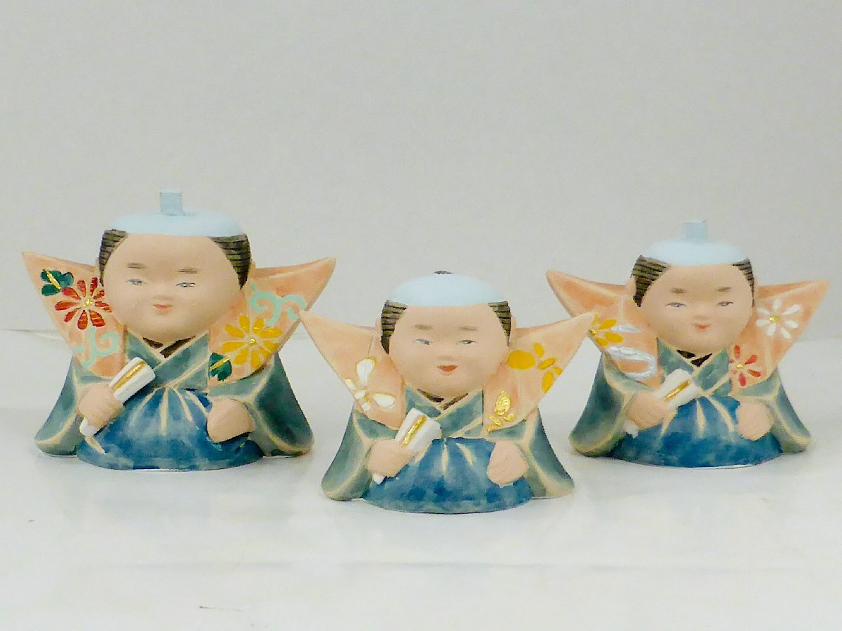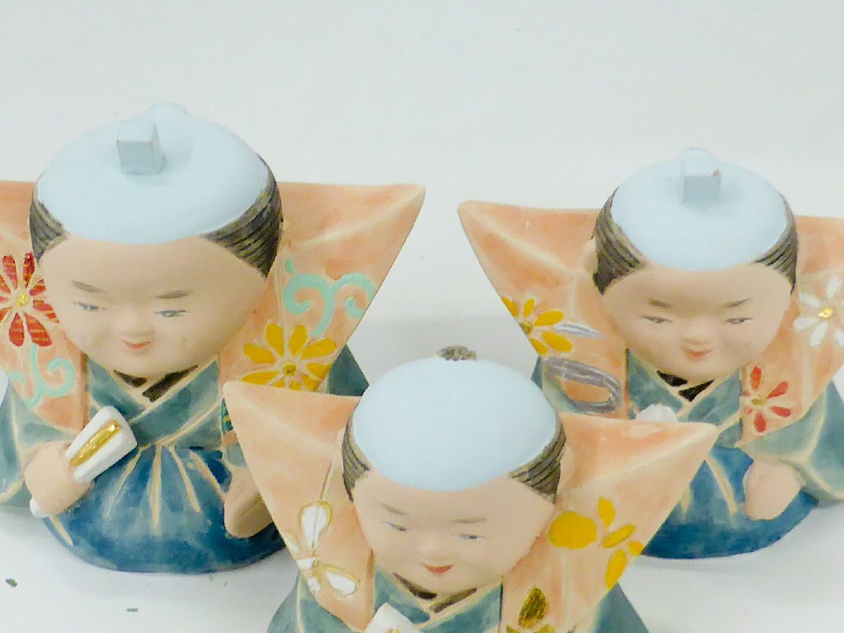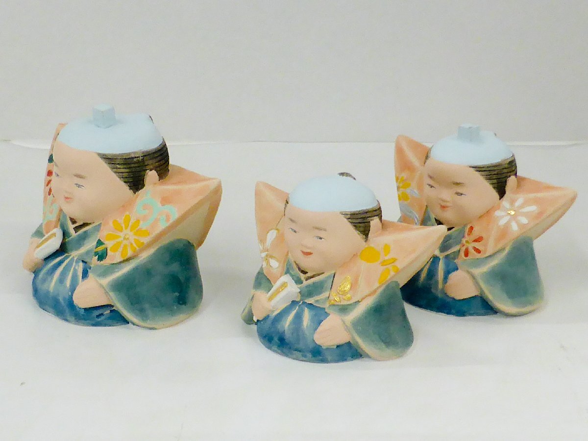 【長期保管品】博多人形 三人福助 戸畑茂四郎作 箱付