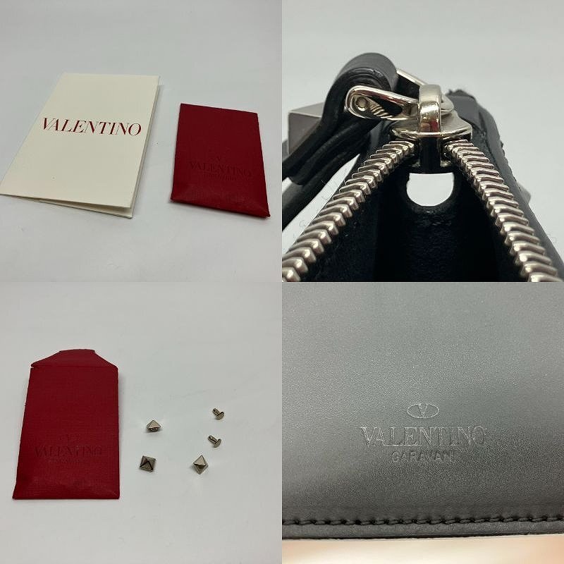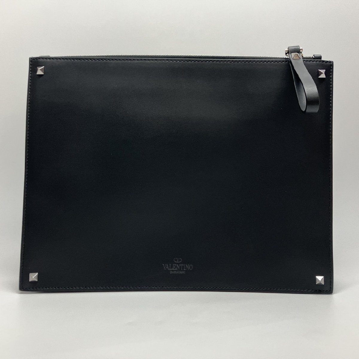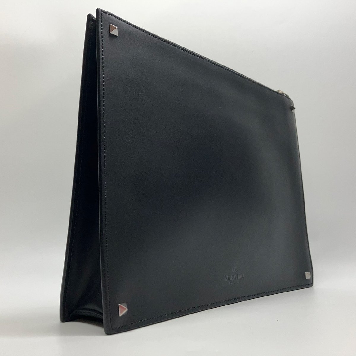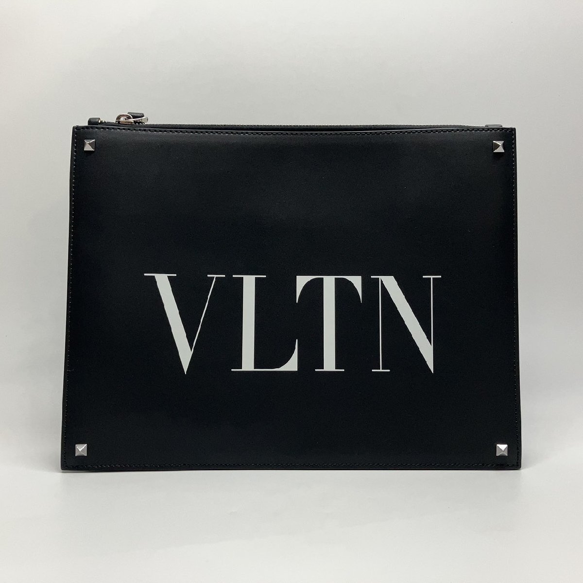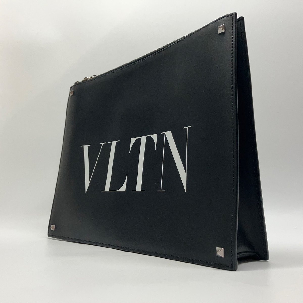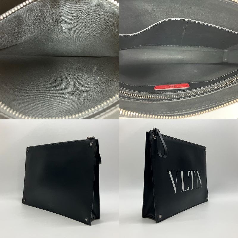 π超綺麗【 Valentino Garavani ヴァレンティノ・ガラヴァーニ クラッチバッグ VLTN スタッズ P0P09LVN 0NI レザー 展示品級 】KH15169
