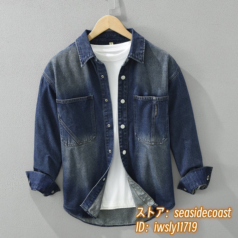 入手困難 デニムシャツ メンズ 長袖シャツ 新品 デニムジャケット 超希少 ヴィンテージ 個性 トレンド カジュアル 心地良し ブルー M