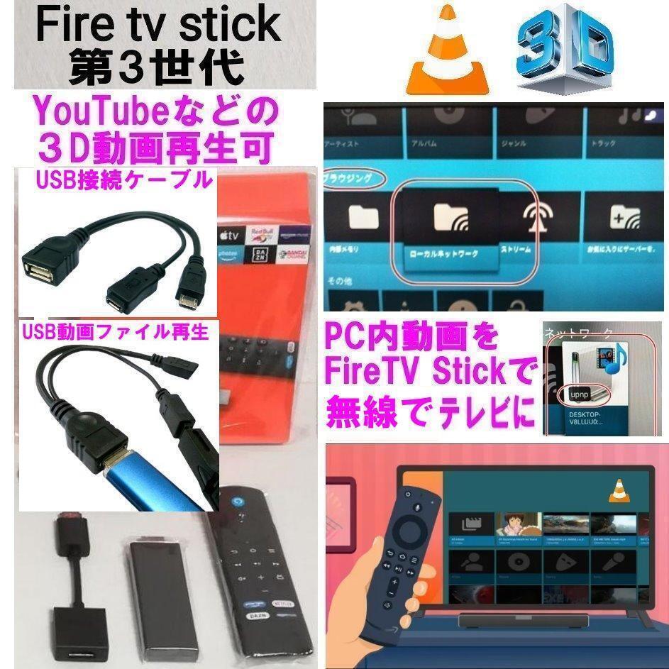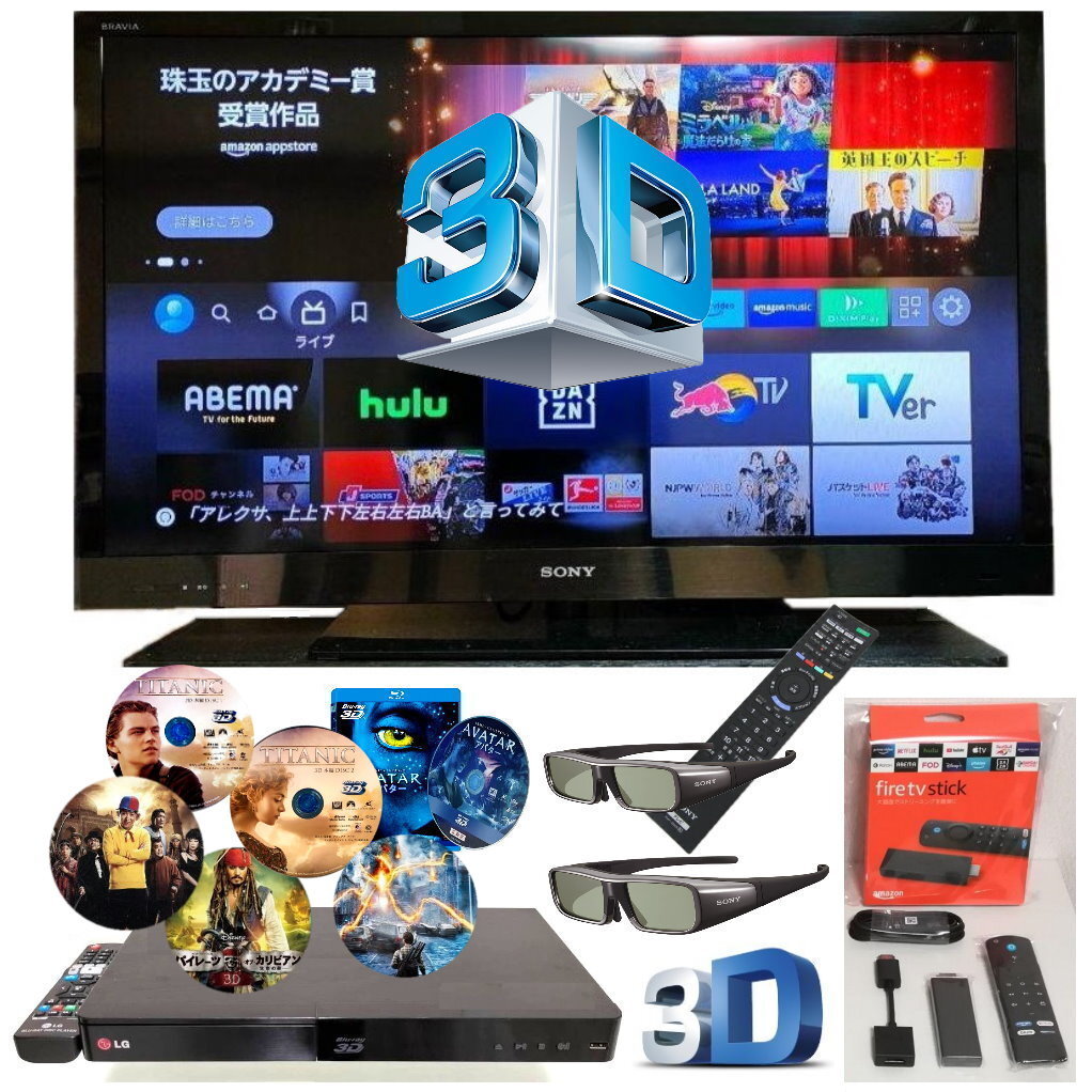 動作確認済み。 3Dブルーレイディスクセット 3Dブルーレイ(アバター3D、タイタニック 3D、怪物くん 3D、パイレーツオブカリビアン 3D、ダーケストアワー 3D)付き。 他、3Dサンプル動画ファイルUSBをお付けいたします。 SONY ブラビア KDL-32EX720 リモコン付き。32型画面でTV視聴。 2D放送を3Dシミュレート変換も可能。 LG エレクトロニクス 3Dブルーレイ ディスクプレーヤー BP540 リモコン付き 3Dブルーレイ再生 MP4などの動画ファイルも外部USBメディアから再生可能です。 (3Dサンプル動画ファイルUSBメディア付き) fire tv stick 第3世代 youtubeの3D動画を大画面で3D視聴可能。 (広告ブロック簡易説明書付き) fire tv stickにPlex: Stream Movies & TV(無料)やVLC for Fire(無料)をインストールして パソコンなどのホームネットワークを構築すれば、ワイヤレスでPC内の3D動画ファイルをTVで大画面で再生できます。 fire tv stick はソニーのリモコンでもある程度の操作ができて便利です。 |