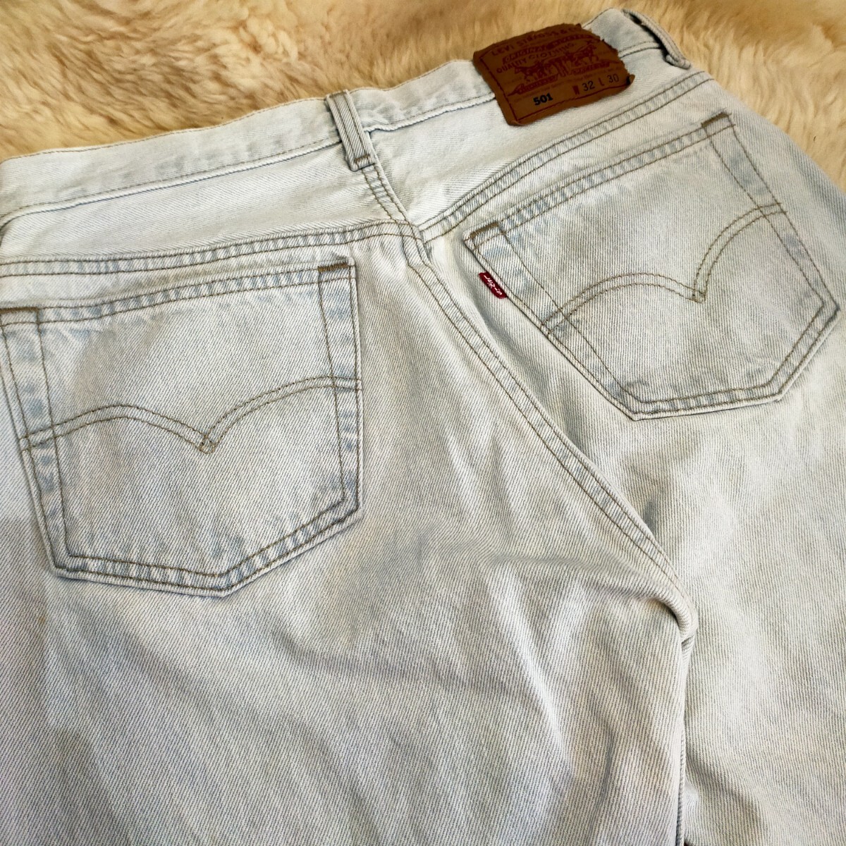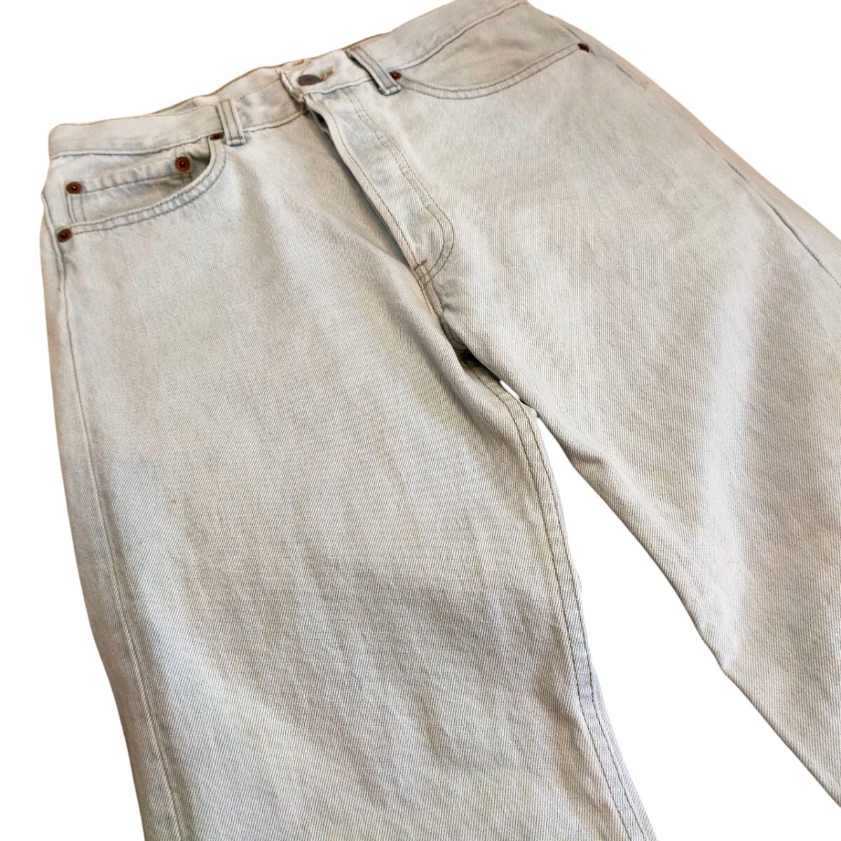 サイズ表記はW32L30、着用感ではメンズM相当かと思います。