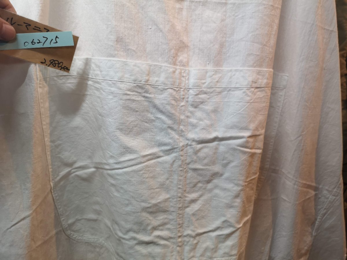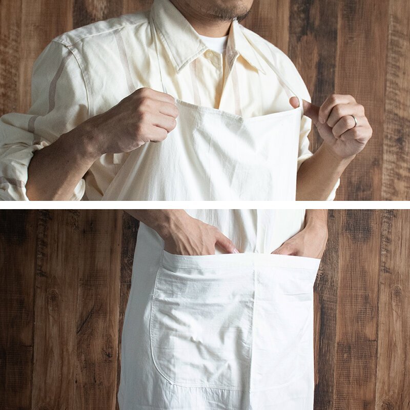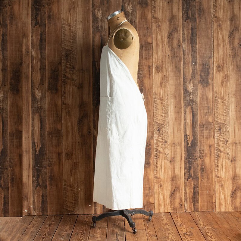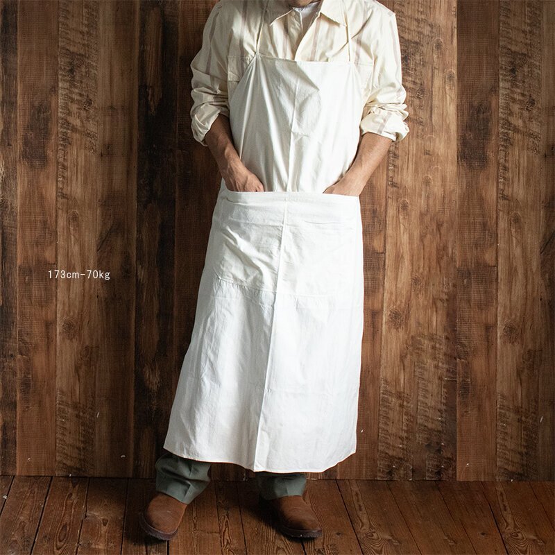 フロント部分に大きなポケットがついたシンプルなエプロンです。 リネン素材のため、ナチュラルな風合いとやさしい肌ざわりが特徴です。 使うほど、洗うほどに手や肌に馴染んで使い心地がさらに良くなっていきます。 大きなポケットがデザインとしてかわいらしいだけでなく、キャンプや庭作業での実用性も兼ね備えております。7枚目までの写真は流用です。 ●サイズ 縦:約90cm~109cm×横:約73cm~96cm(広げた状態のエプロン最長部) ●素材:コットン/リネン ●状態:デッドストック(未使用品ですが長期にわたり倉庫にて保管されていた商品)の為、日焼けがある場合があります。 沖縄離島を除くネコポス便200円でお送りいたします、落札価格にプラスでお願いいたします。