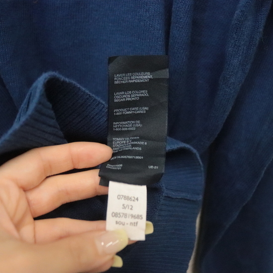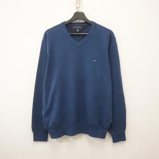 商品名 d944 2000年代製 トミーヒルフィガー コットンニットセーター■00s 表記Lサイズ ネイビー Vネック ワンポイントロゴ アメカジ 古着