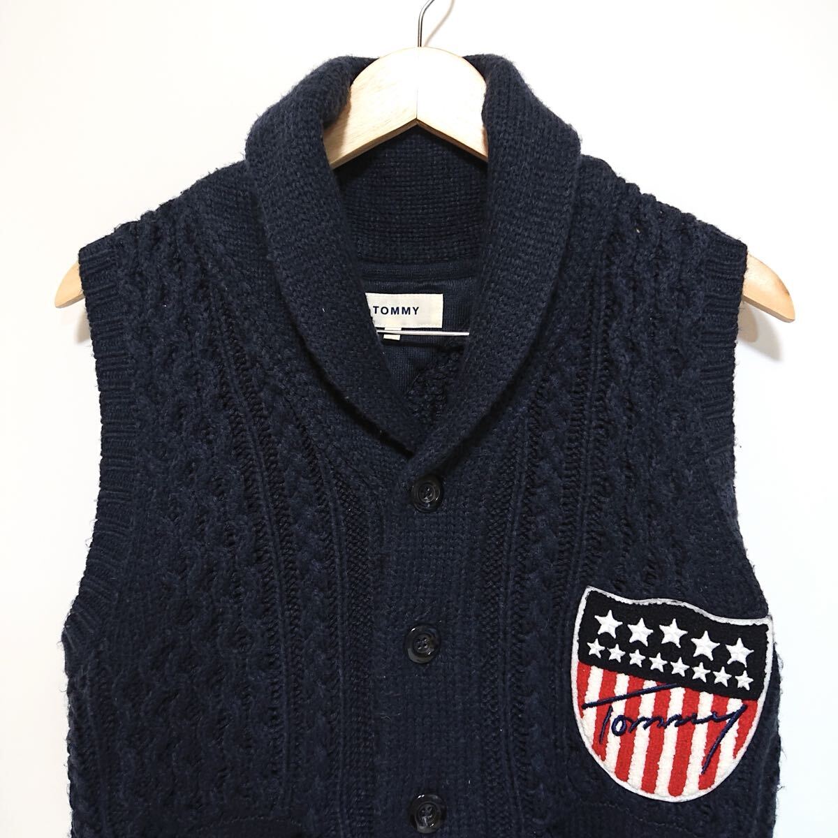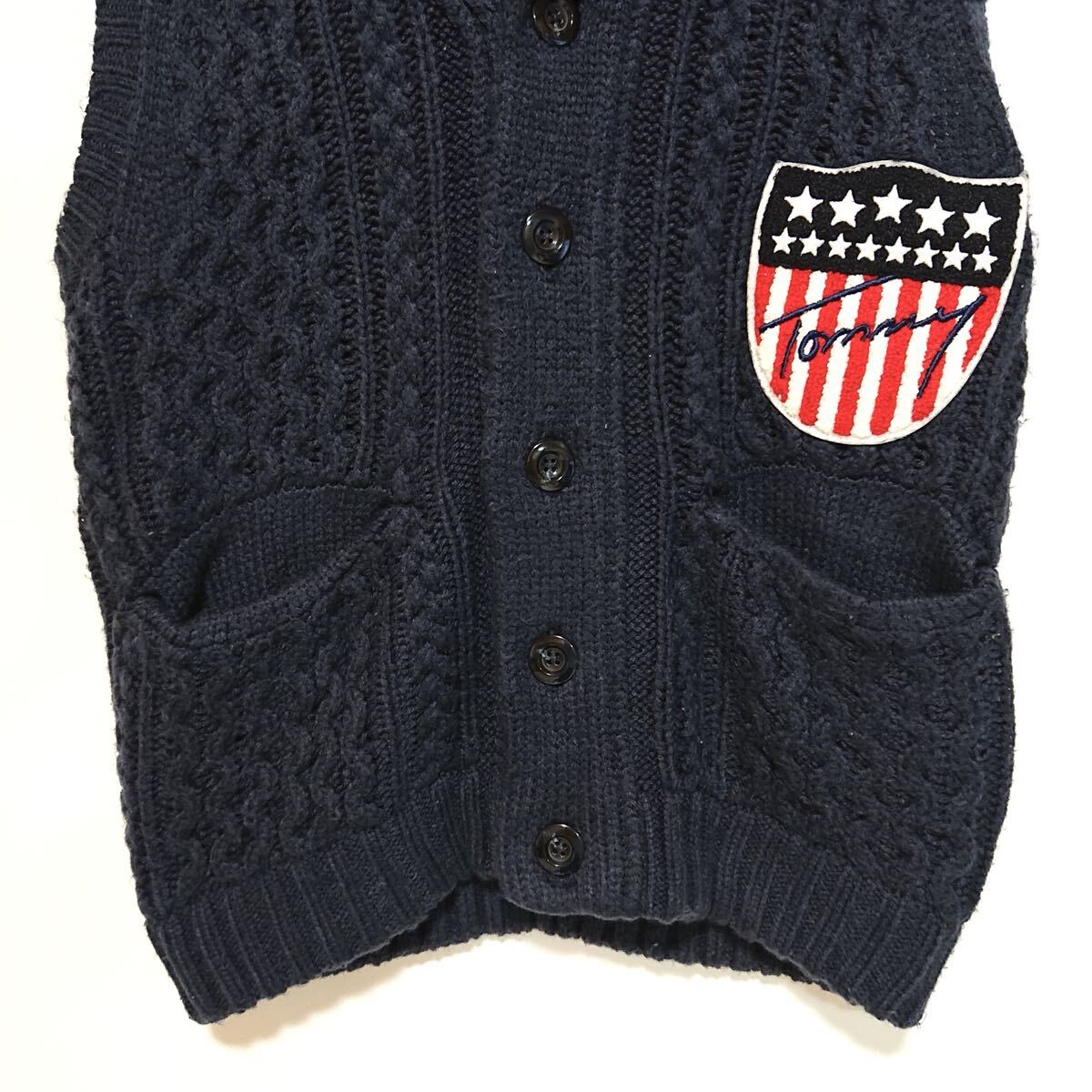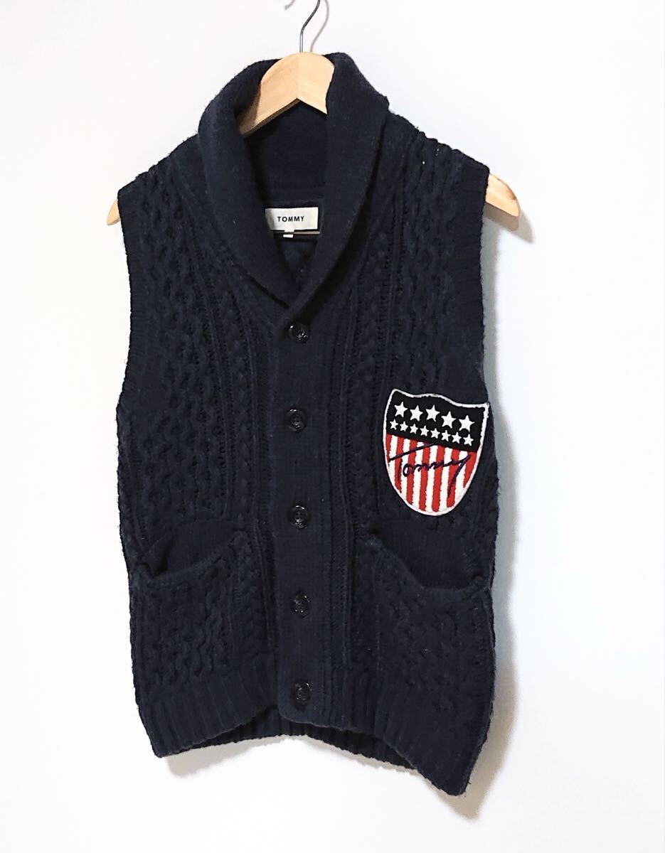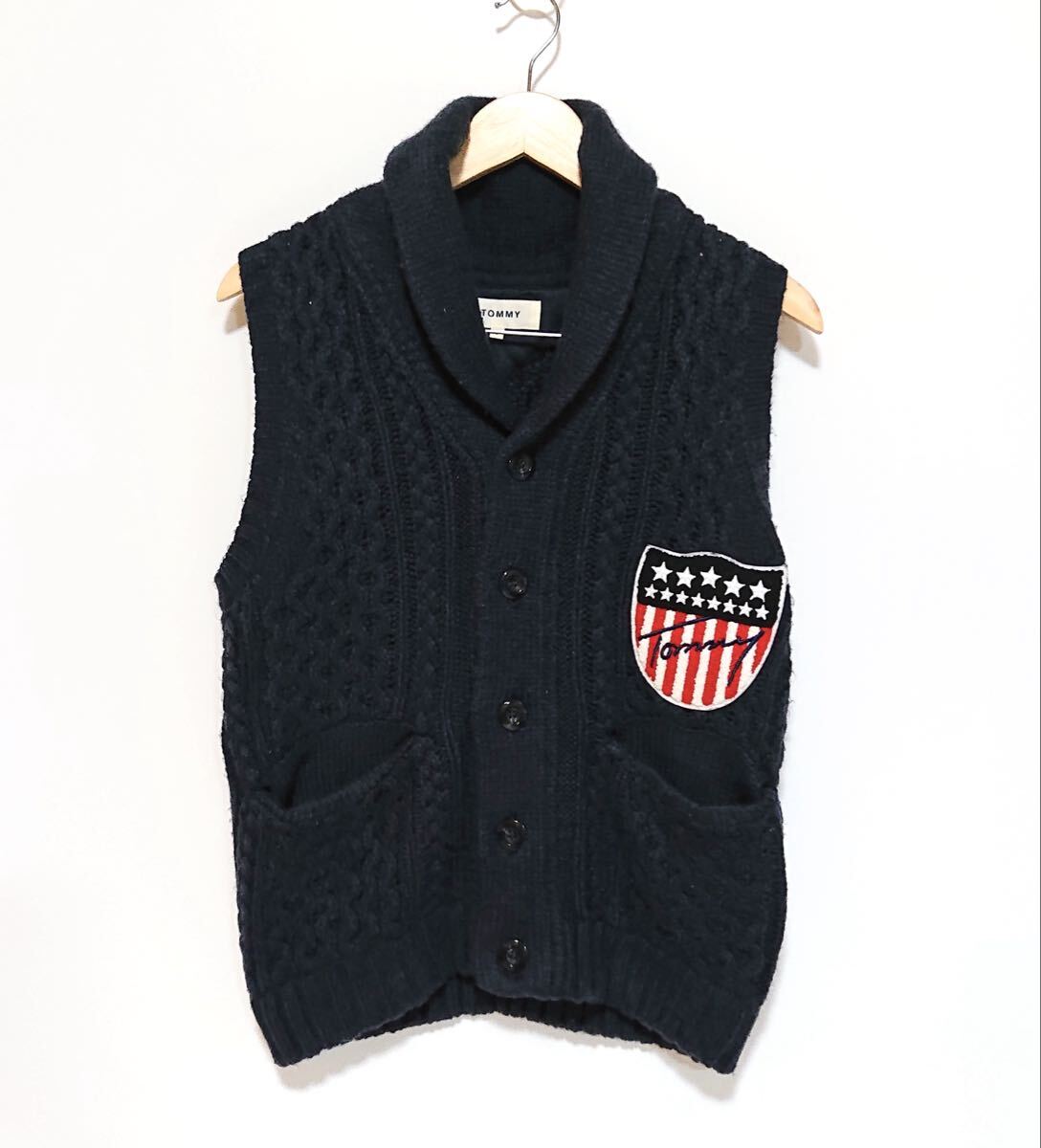 h4283gg TOMMY/トミー サイズS ニットベスト ネイビー メンズ 秋冬アウター 上着 トミーワッペン おしゃれ 着まわしコーデ 古着好き used
