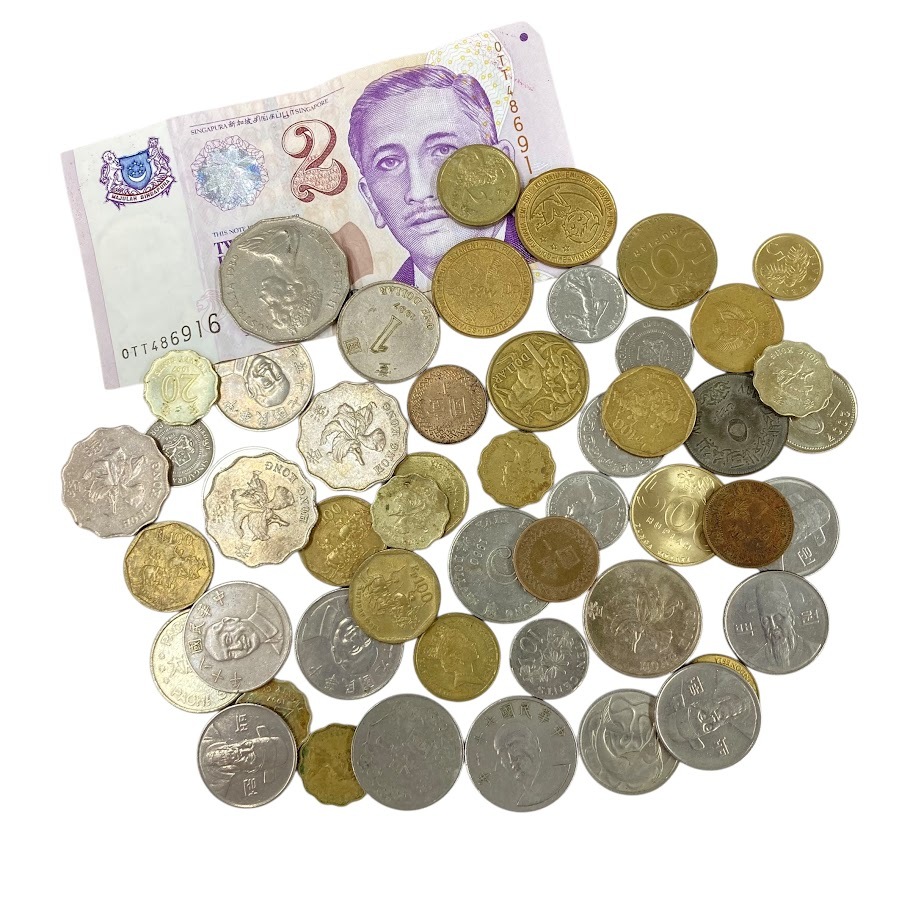 【IT4ELXBN7LZC】外国硬貨セット 古銭 お金 外国コイン 紙幣 シンガポール 香港 韓国 中国 インドネシア マレーシア コレクション