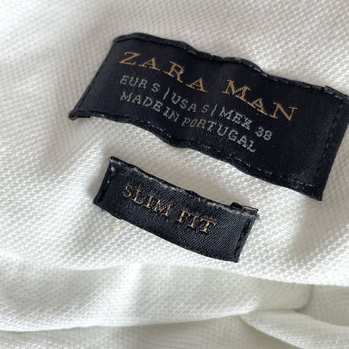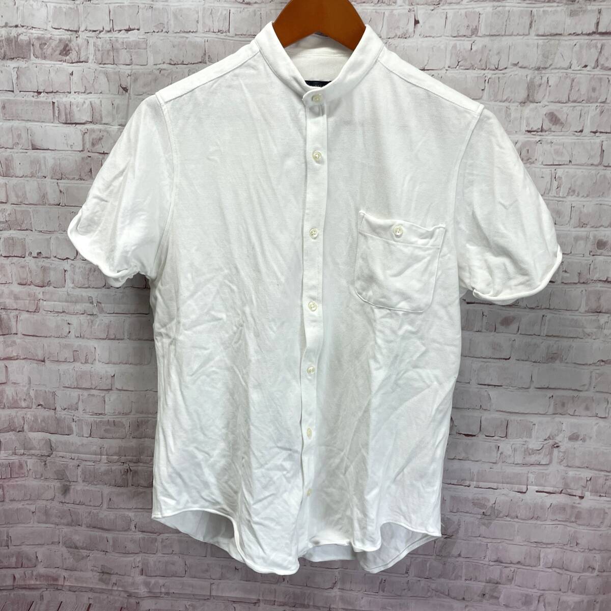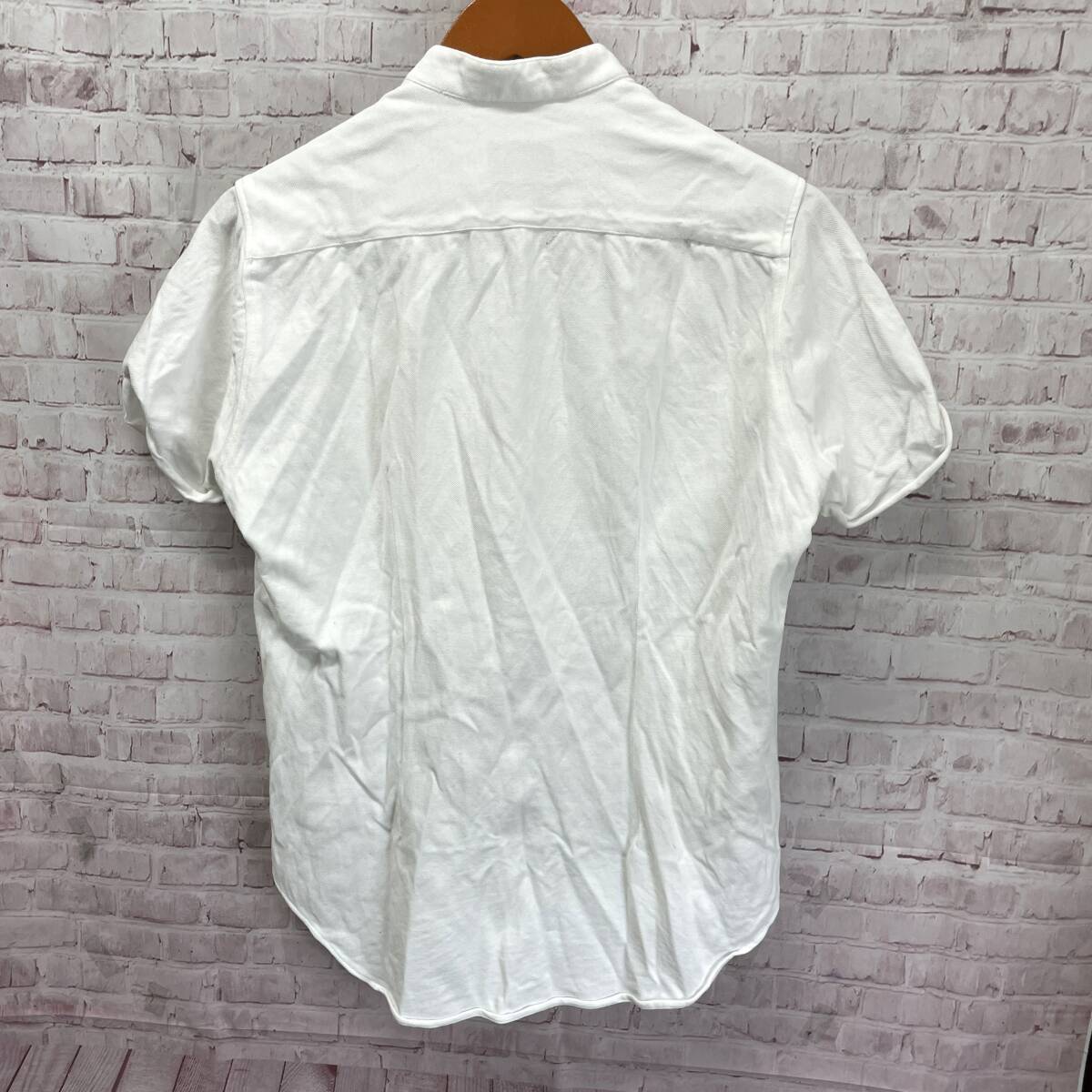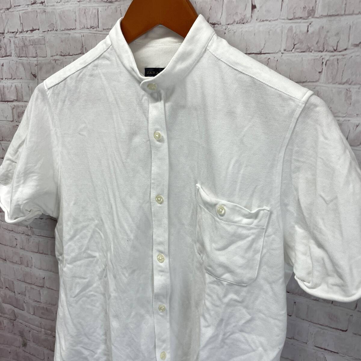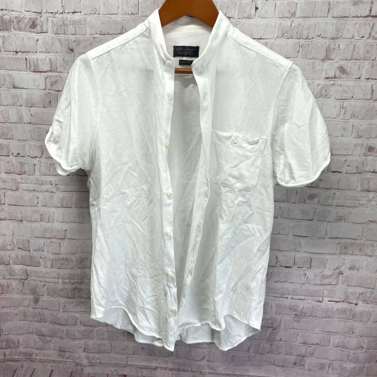 ZARA MAN ザラ マン 半袖 ポロシャツ スタンドカラー カットソー ホワイト系 無地 鹿の子 袖ロールアップ SLIM FIT スリム フィット