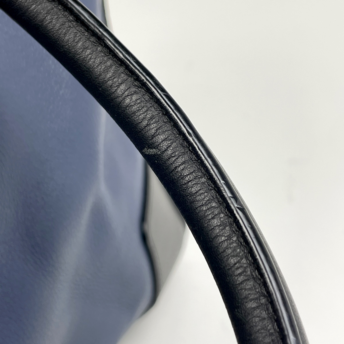 《全体》型崩れ、生活臭、スレ、キズ、汚れ 《内側》毛羽立ち 《ハンドル》押し跡 《金具》小キズ 《フラップ式ポケット》押し跡、ひび割れ 《保存袋》劣化 |