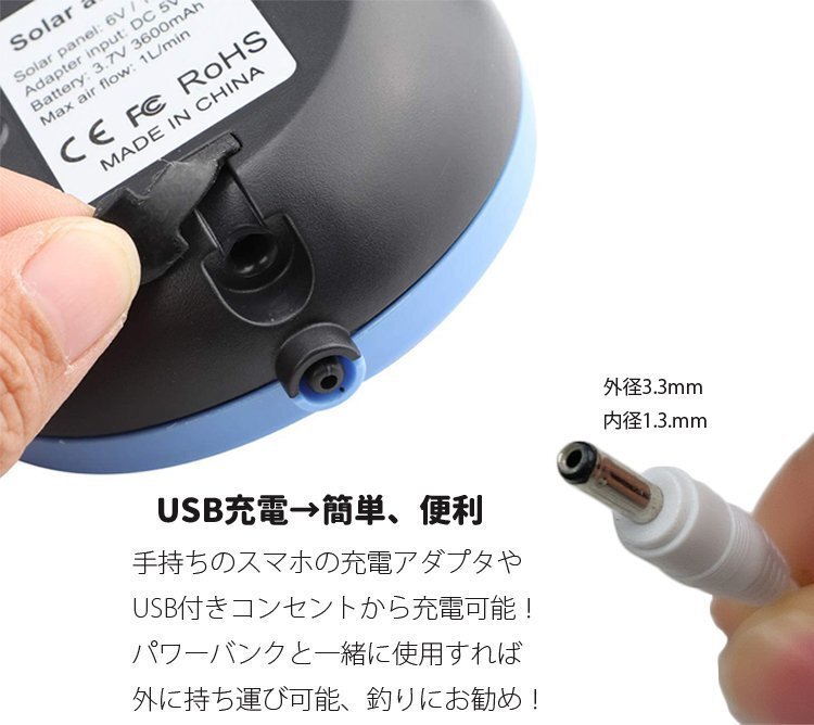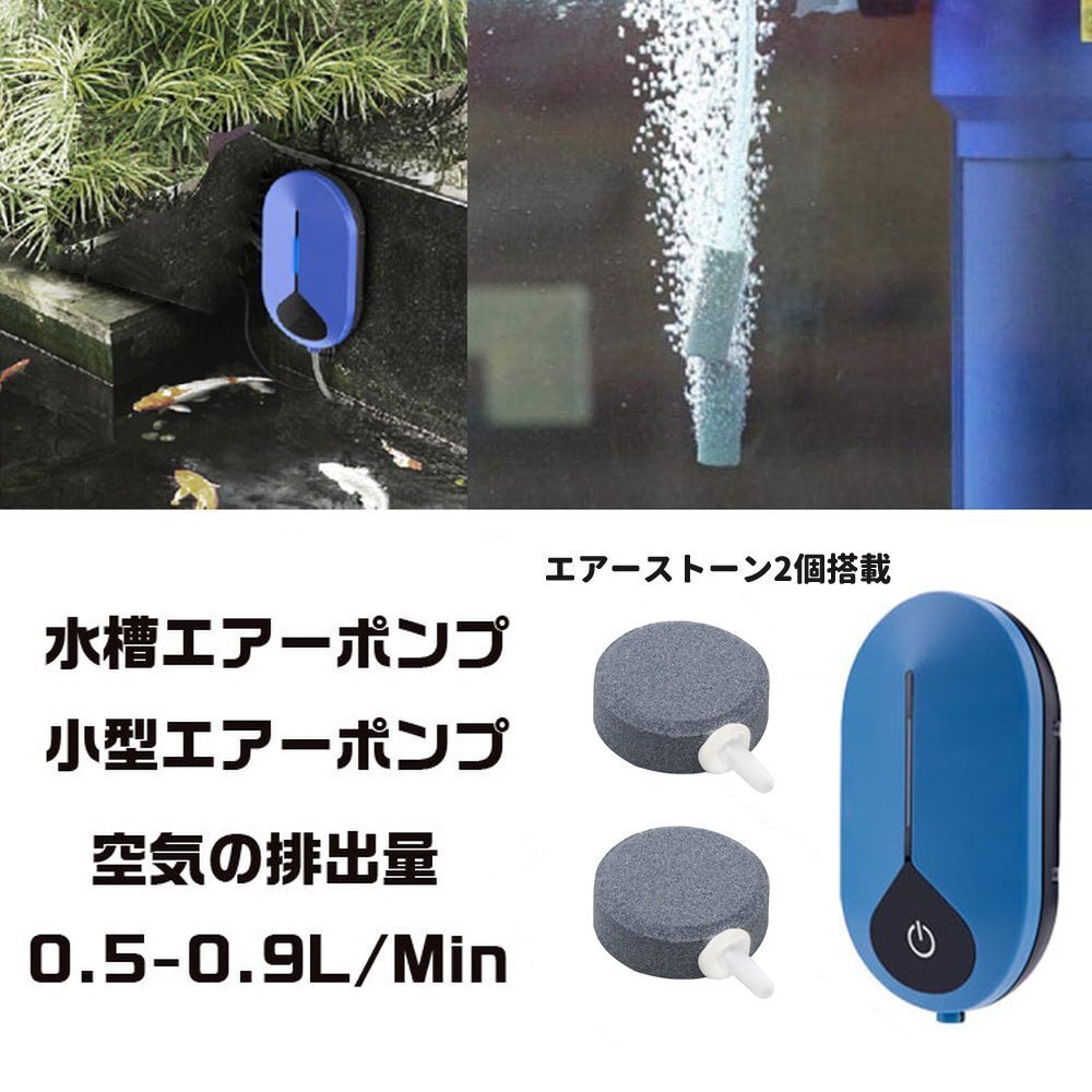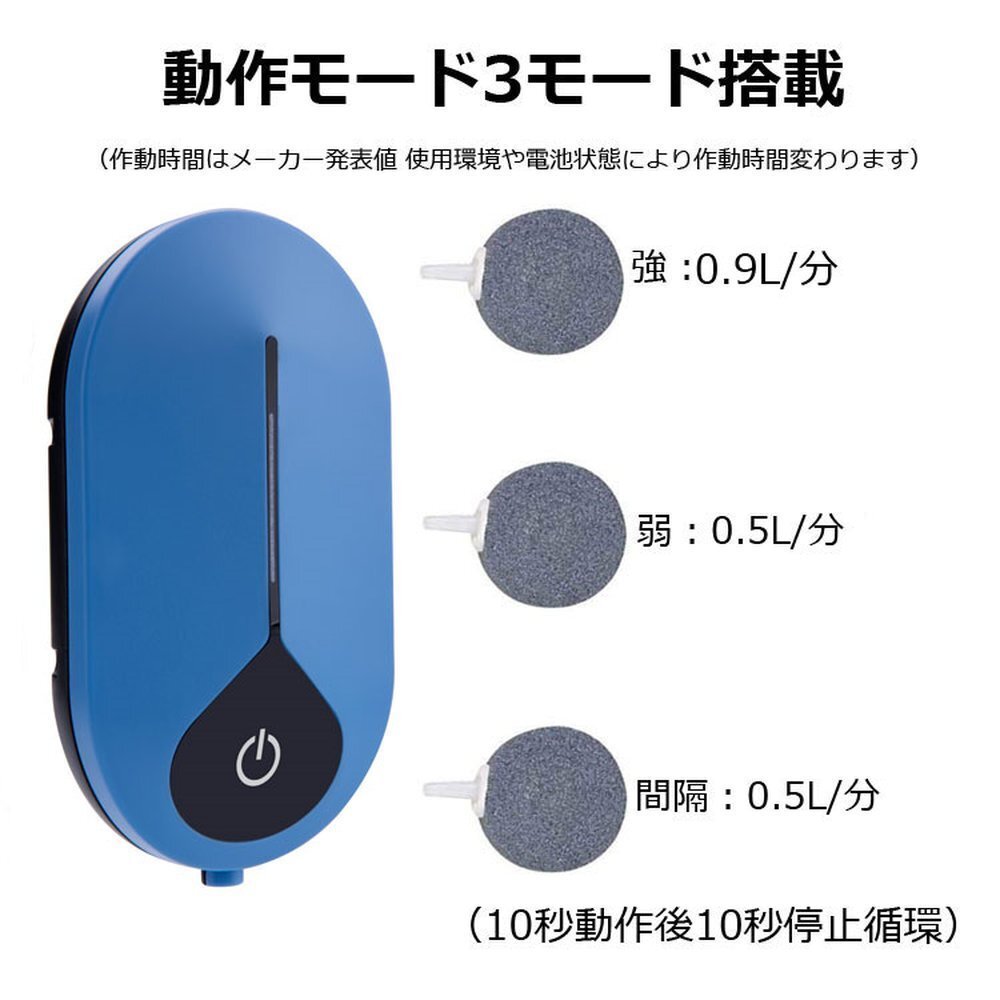◆エアポンプ 水槽ポンプ 酸素ポンプ USBポンプ 持運び 小型 静音 充電式 強 弱 間欠 3モード0.9L/min 1.5W エアーストーン2個 釣り/池/魚タンク/水槽の酸素補給用 BSVOP008USB