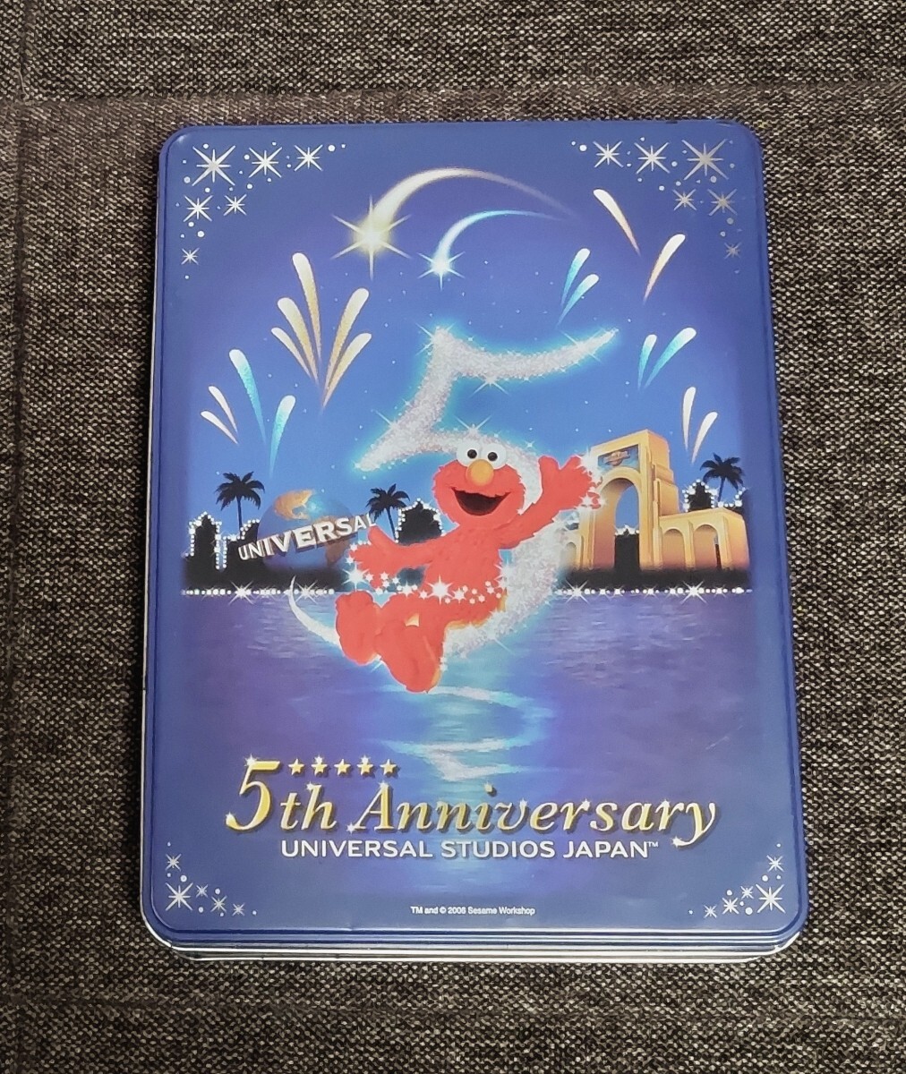 ユー・エス・ジェイ USJ 5周年 5th Anniversary セサミストリート エルモ 缶 お土産 クラッカー ユニバーサル・スタジオ・ジャパン