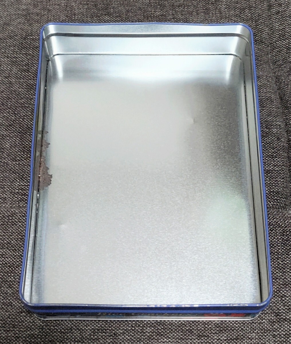 内側は未使用です、特に使用感はありません。中に何かを入れたりはしていませんが錆のようなものが缶の内側に1ヶ所、裏側に小さな錆のようなものが3箇所、蓋の内側に小さな錆のようなものが1ヶ所あります、画像にてご確認下さい。
