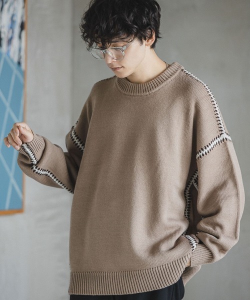 キーワード:セーター ニット メンズ クルーネック 長袖 秋 冬