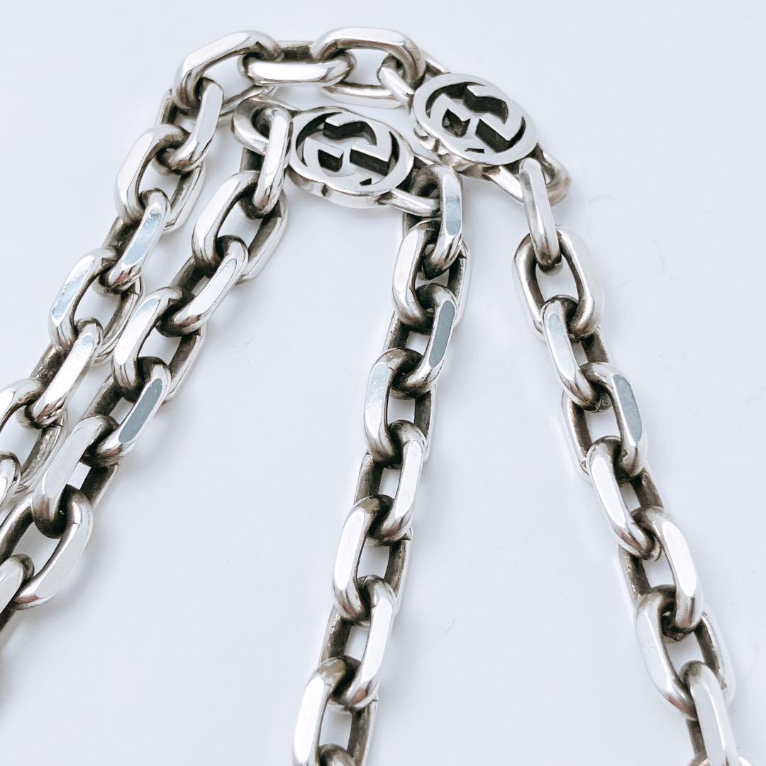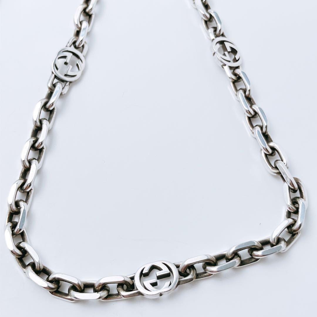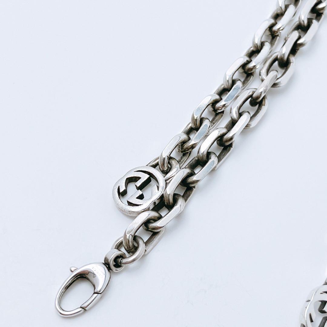 洗浄済 グッチ GUCCI 925 ネックレス シルバー メンズ ON445 チェーン インターロッキング アクセサリー ペンダント