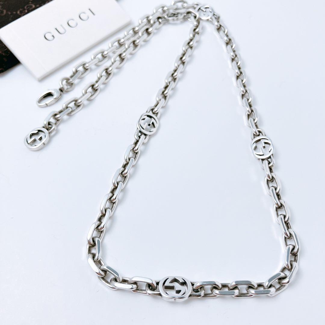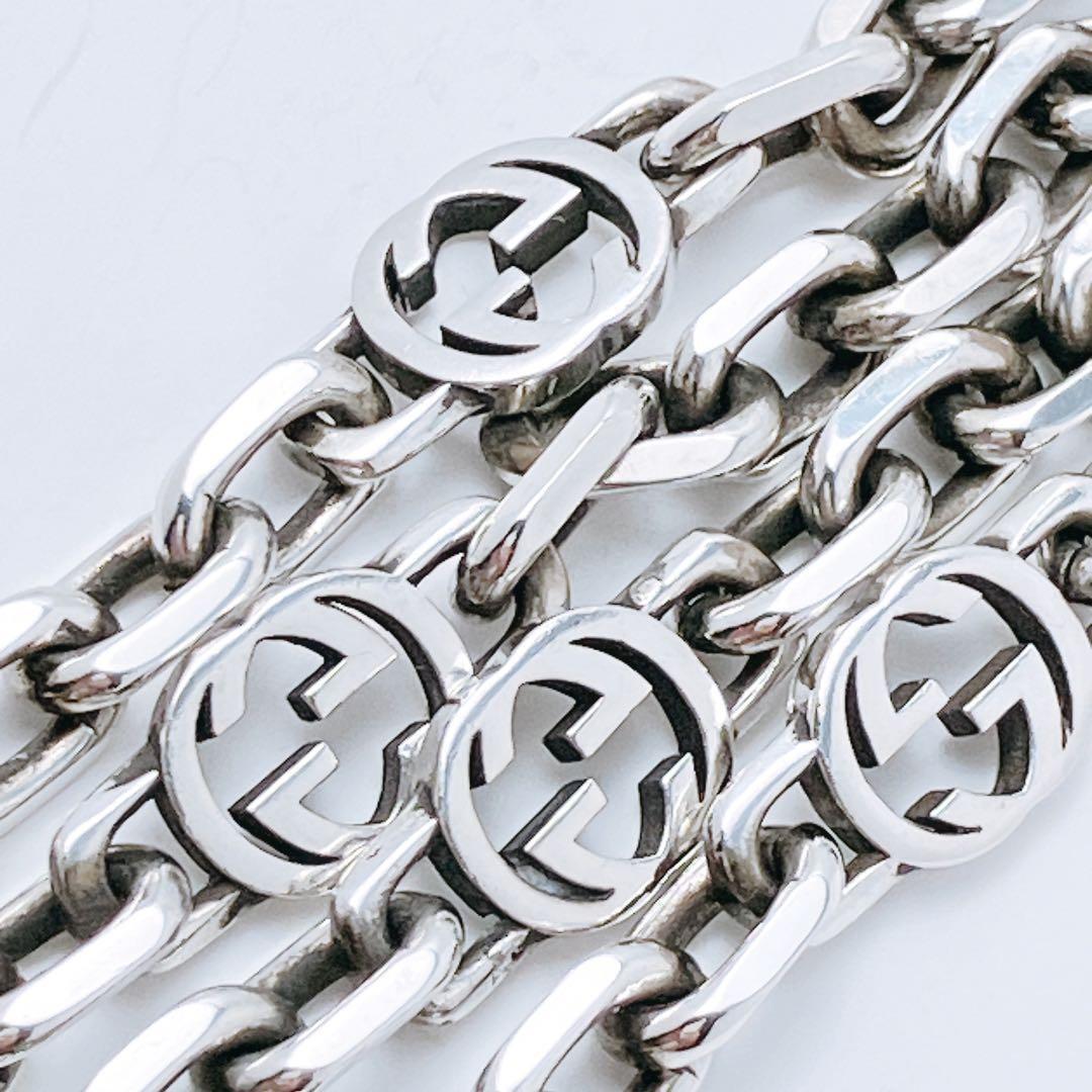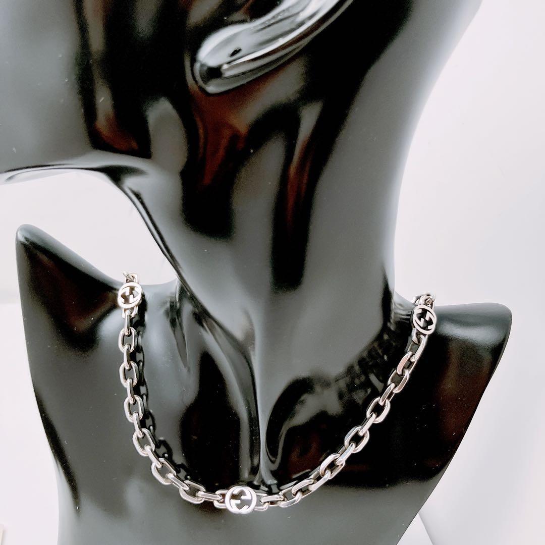 洗浄済 グッチ GUCCI 925 ネックレス シルバー メンズ ON445 チェーン インターロッキング アクセサリー ペンダント