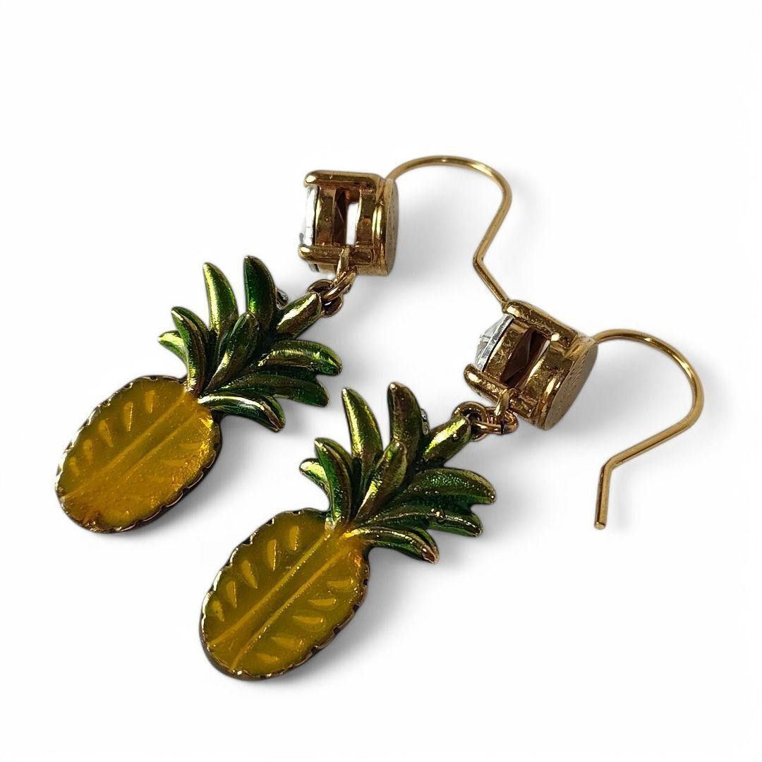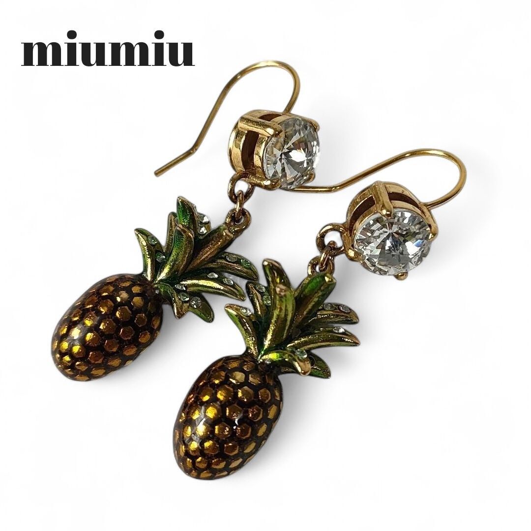 ゴールデンパイナップルの輪切りデザインがとてもキュートな『miumiu』のピアスです。煌びやかな輝きのクリスタルも相まって、付けるだけでコーディネートをグレードアップしてくれる、とても可愛くて素敵なアイテムです◎