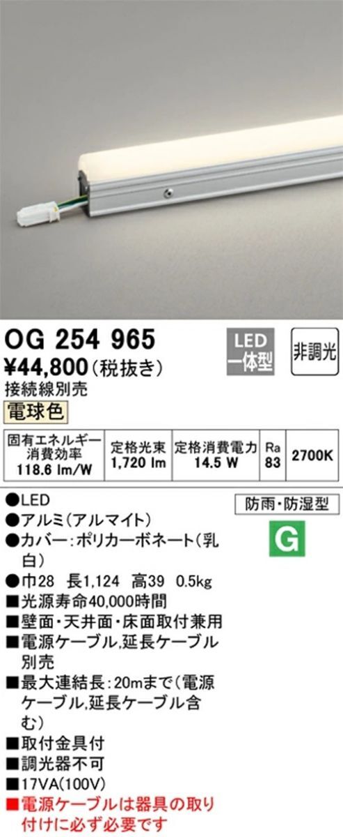 間接照明 2700K 電球色 非調光 接続線別売 オーデリック OG254965