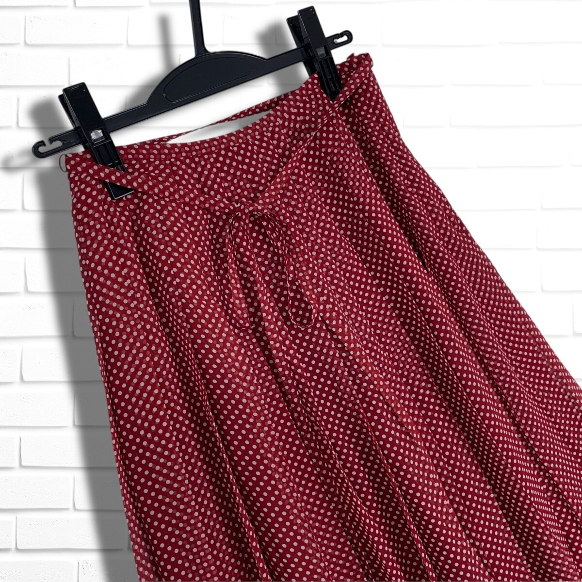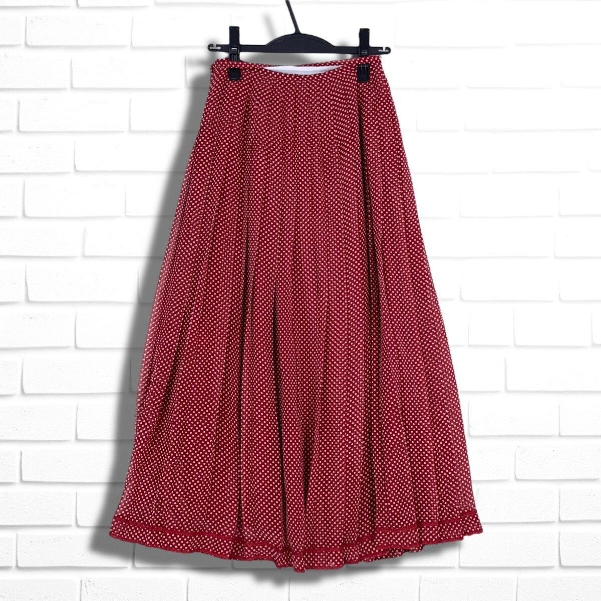 ◆良品◆ KANEKO ISAO カネコイサオ ドット プリーツ ロング スカート 赤 × 白 レッド ホワイト レディース ◆送料無料◆ 0755I□