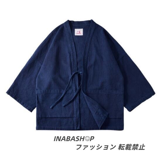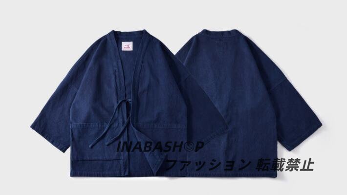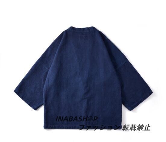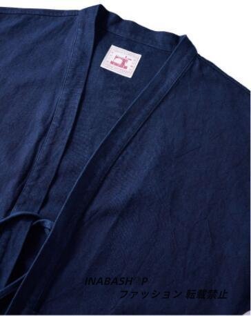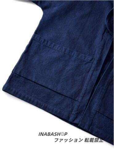 藍染 カバーオール 半纏 褞袍 綿&麻 ワークジャケット ゆったり 大きいサイズ 天然藍 インディゴ 薄手 M~2XL