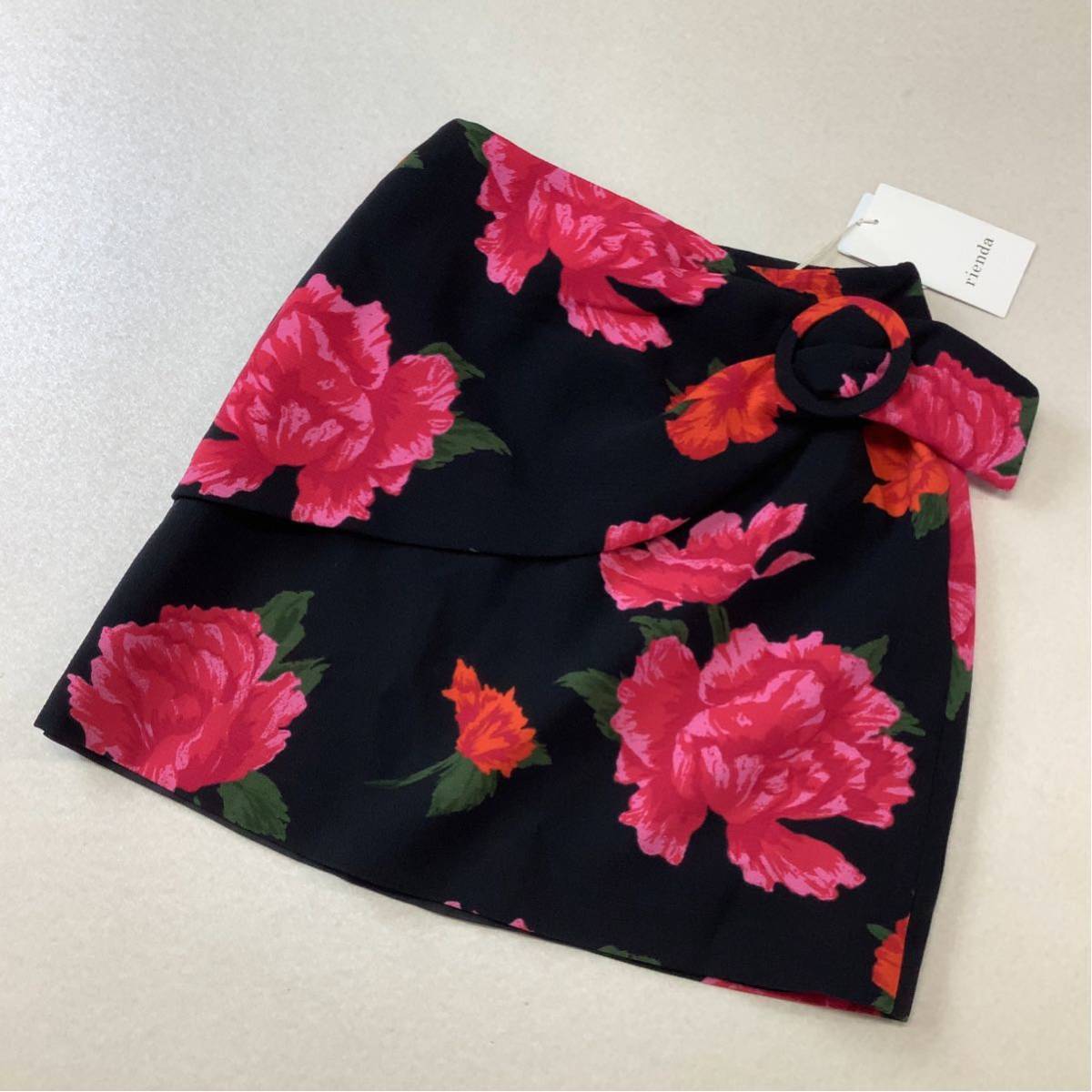 新品 タグ付 rienda リエンダ 総柄 花柄 バラ柄 ミニスカート レディース Sサイズ ブラック