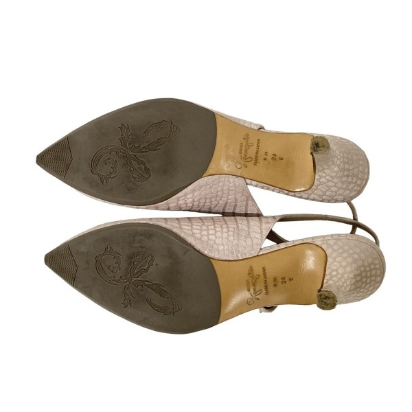 ギンザカネマツ GINZA Kanematsu サンダル 24 E - レザー ピンク 型押し加工/アウトソール張替済 靴