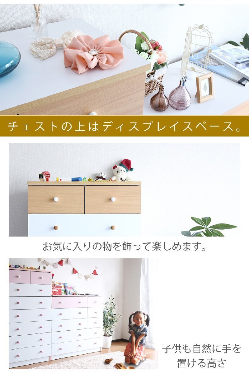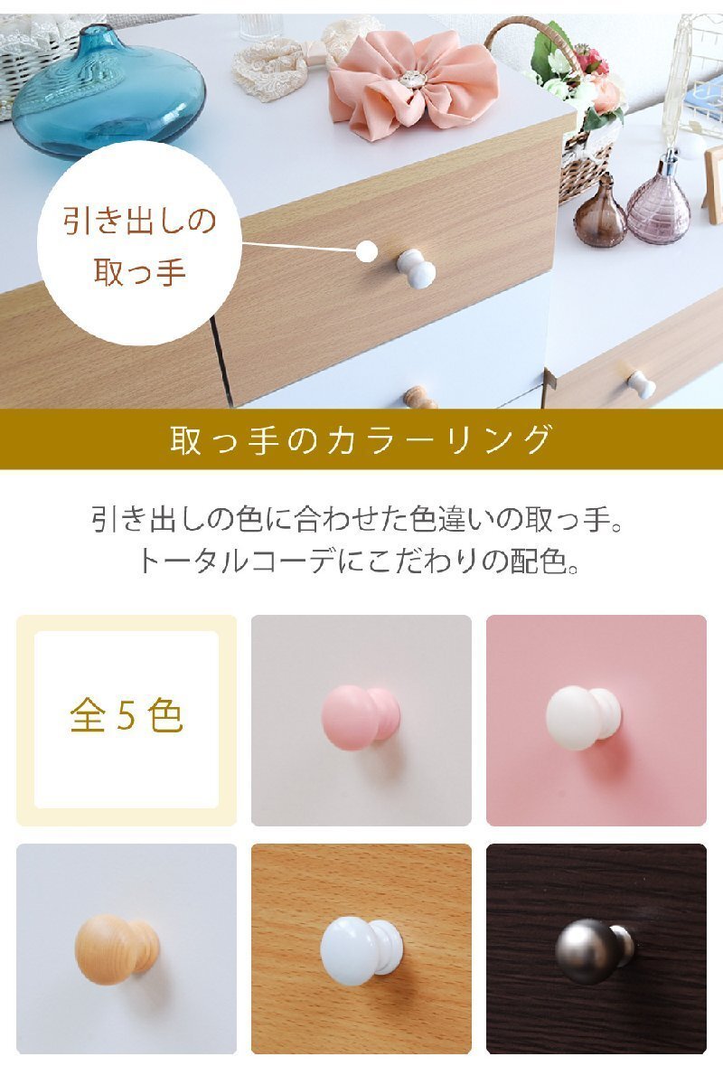 ■商品説明 かわいいピンクとさわやかなナチュラル、シックなダークブラウンをご用意。お子様から大人まで幅広い世代にピッタリのシンプルなデザイン。引き出しには衣類から小物までたっぷり収納。 |