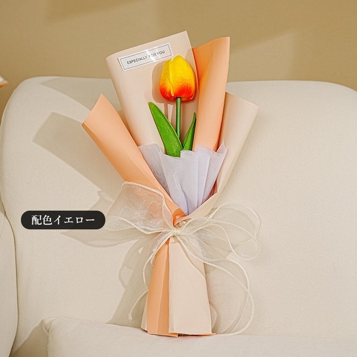 お花束 チューリップ ブーケ 1本巻 母の日 1輪 枯れない花 花 造花 プレゼント ギフト 誕生日 贈り物 結婚記念日 バレンタイン 退職祝い 送別会 結婚祝い 卒業祝い 入学祝い 開店祝い 引越し祝い 新築祝い お見舞い 就職祝い かわいい