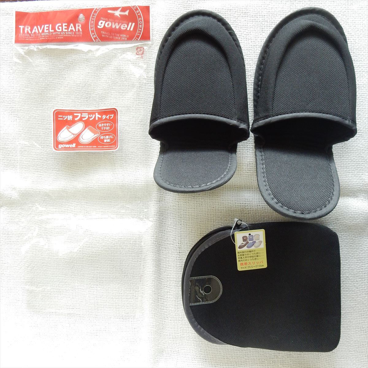 旅行用携帯スリッパ 二ツ折 フラットタイプ ポーチ付き 持ち運びに便利! サイズ25.5~27.0cm gowell TRAVEL GEAR