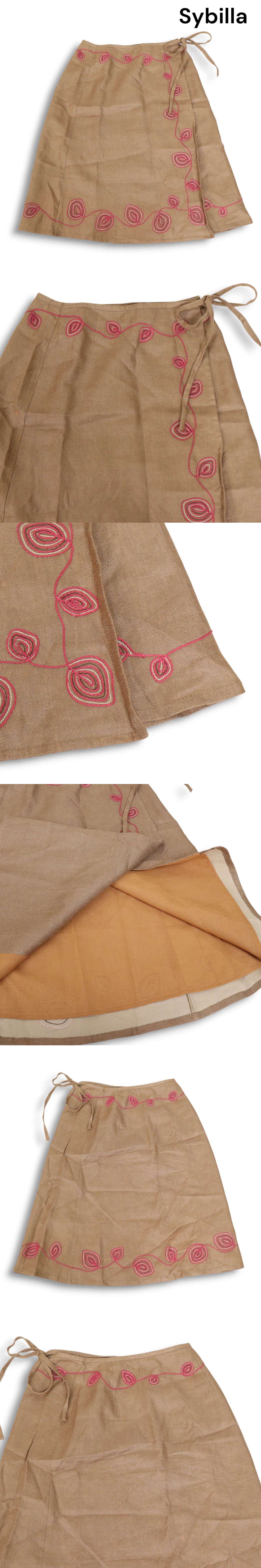 Sybilla シビラ 春夏 麻 リネン100%★ 刺繍 ラップ スカート Sz.M レディース