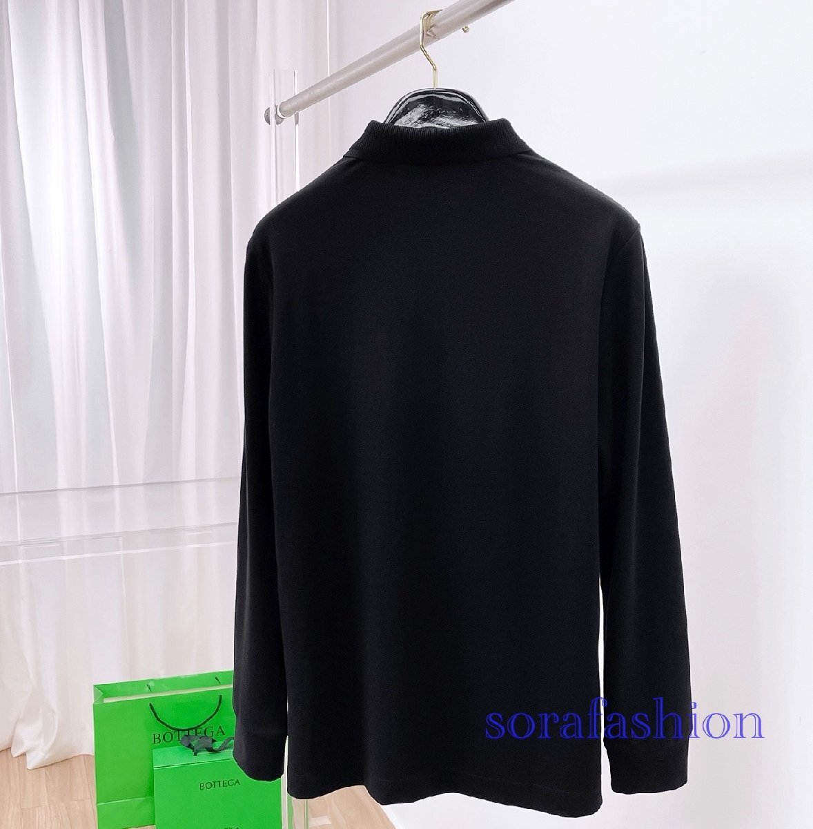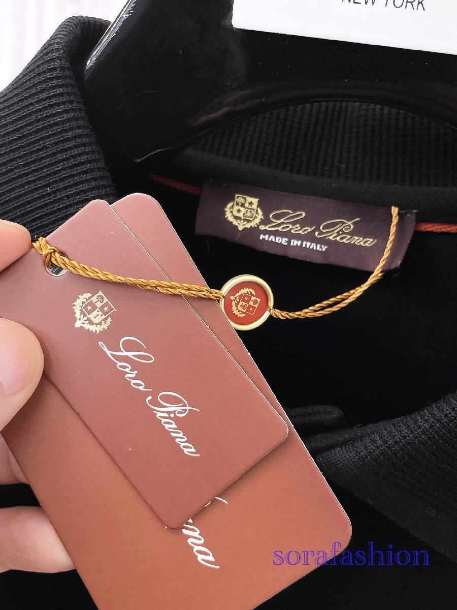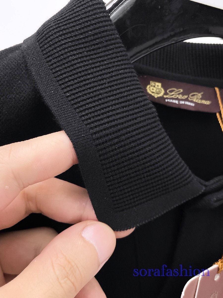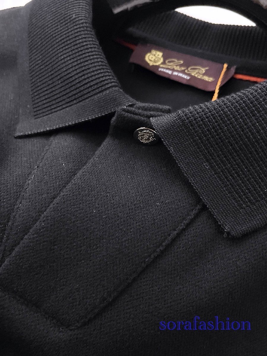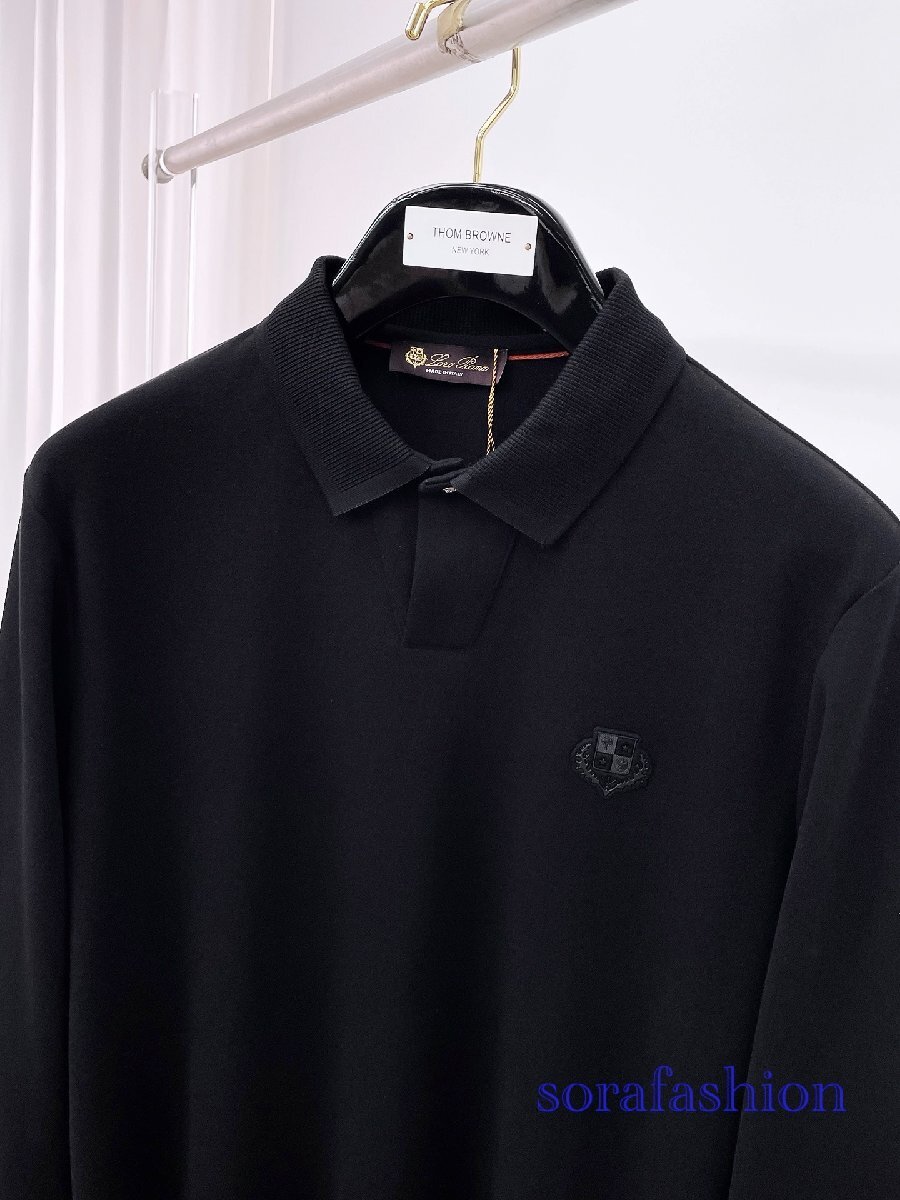 Loro Piana ロロピアーナ メンズ長袖ポロシャツ T-シャツ ブラック 2XLサイズ トップス カットソー 無地 紳士服 コットン 秋物 シンプル