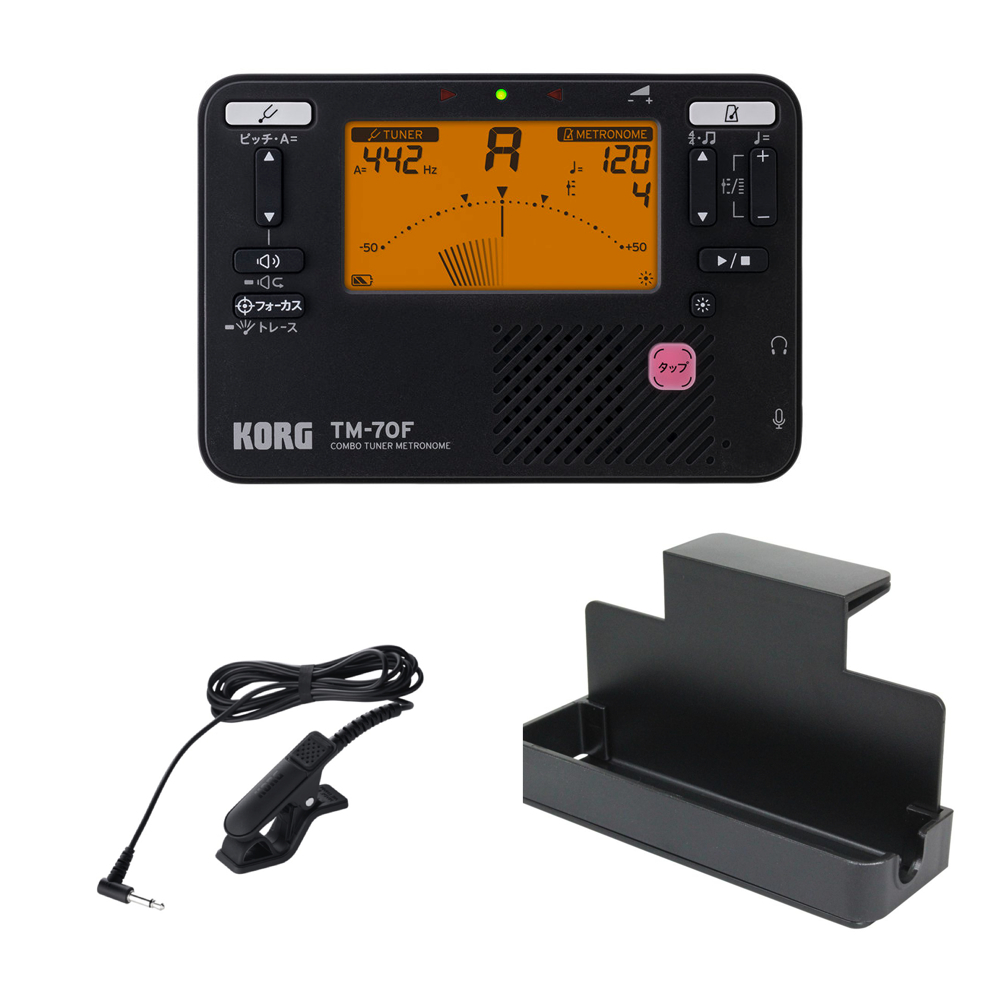 チューナー メトロノーム コルグ KORG TM-70F BK コンタクトマイク CM-400&譜面台トレイ付きセット 吹奏楽 管楽器 弦楽器 ブラスバンド オーケストラ チューナーメトロノーム 黒 ブラック