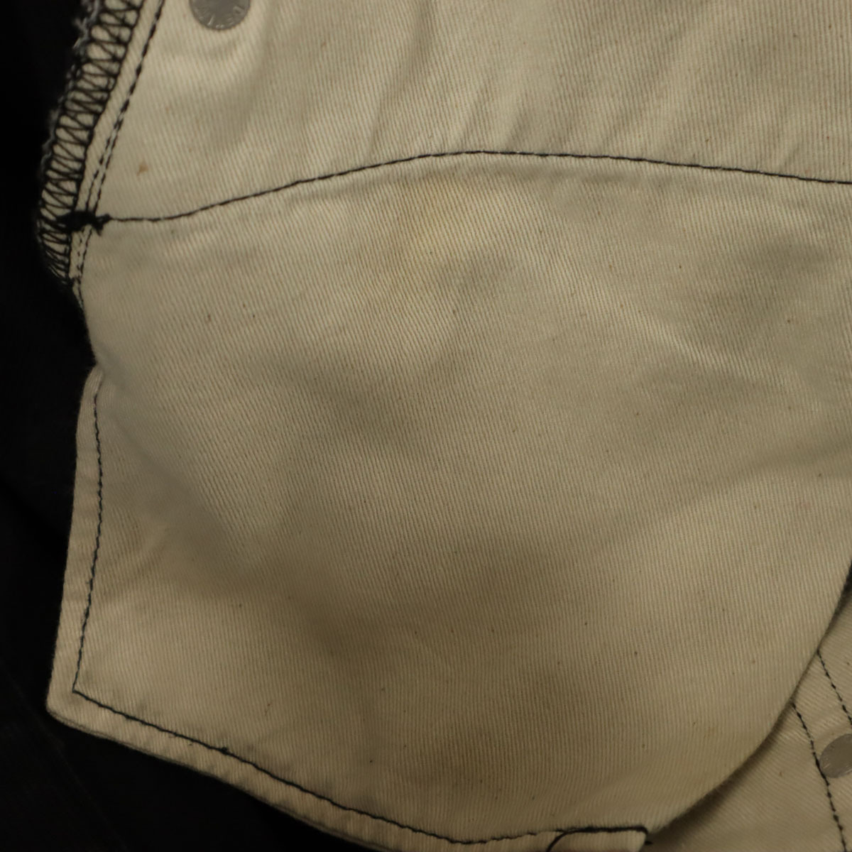 詳細 | 全体に白っぽく色褪せ、スレキに汚れ、ボタンとリベットに青錆あり。サイズ、素材共に不明です。実寸も参考にお願いします。古着にご理解の上ご購入をお願い致します。 |