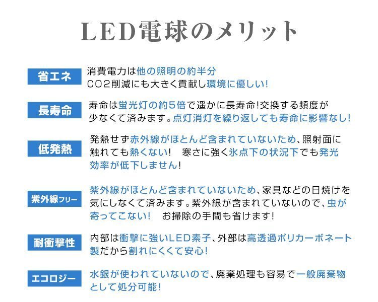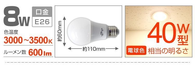 | 商品コード:LEDLB8AD 安心の1年保証付き! ECO!省エネ&長寿命のLED電球! 落ち着いた雰囲気の「電球色」です。 白熱電球・電球形蛍光ランプに近い光の広がり しっかり照らすタイプです。 ご使用中の照明をLEDに変えるだけで、節電効果がUPします! さらに約40000時間もの長寿命!! 長時間使う部屋や、取り替えにくい所にオススメです。 発熱量が少ないので、光の下にいても暑くありません。 また、LEDの光は、赤外線や紫外線をほとんど含まず、紫外線による色あせなども抑えます。 白熱灯と比べると電気代もかなりお得です♪ ■商品仕様 ■口金:E26 サイズ(約):全長110mm×最大径60mm 消費電力:8W 電圧:AC90~130V 50/60HZ 寿命:約40,000時間 ※表示寿命は設計寿命であり、製品の寿命を保証するものではありません。 色温度:電球色 3000~3500K 全光束:電球色 600lm 材質:アルミニウム、PC樹脂 PSE取得品 ■商品内容■ 2個セット LED電球 E26 8W 電球色 ■注意事項■ ・取付・取外しは必ず電源を切った状態で行なってください。 ・ランプはソケットに確実に取り付けてください。 ・リモコンタイプの照明器具は調光器に対応しておりません。 ・断熱材施工器具と密閉器具にはなるべく使用しないでください、使用寿命の減少の原因になります。・周囲温度が40℃を超える場所や腐蝕性環境では使用しないでください。 ・直流電源では使用しないでください ・点灯中・点灯直後は直接手でふれないでください。 ・水洗いや分解・改造はしないでください。水滴などがかかる場所では使用しないでください。 ・紙や布などでおおったり、燃えやすいものに近つけないでください。(火災、器具過熱の原因)・電源を入れた状態や電源を切った後しばらくの間は、ランプが熱いので触れないでください。(ヤケドの原因) ■保障期間 7日間 ※商品到着後7日以内の初期不良・破損のみご対応させていただきます。 ■注意事項 ※海外からの輸入製品となりますので、製造、または配送の過程において生じた、細かなキズやへこみが見られる場合がございますが、機能性や品質上に問題はないため、返品や交換の対象とはなりません。予めご了承の上、ご購入をお願いいたします。 ※商品を使用して発生した事故・トラブル・破損等につきましては一切の責任を負いかねます。 ※商品は、モニターによって色合いが異なって見える場合があります。 ※仕様・デザインは改良のため予告なく変更することがあります。 【もちろん新品未使用品です】 |