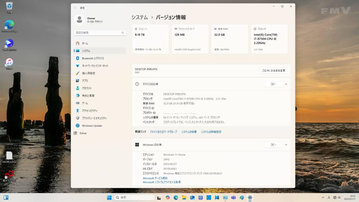 OS:Windows10 Home 64ビットWindows11 Home 64ビット最新版(Win11バージョン:24H2)