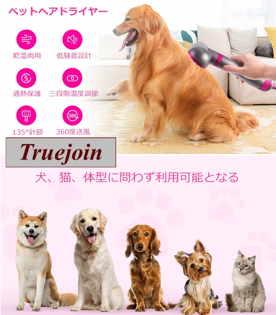 ドライヤーの音に怯えてしまうペットには、お勧め、最適です。