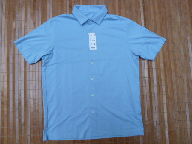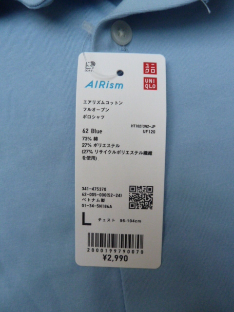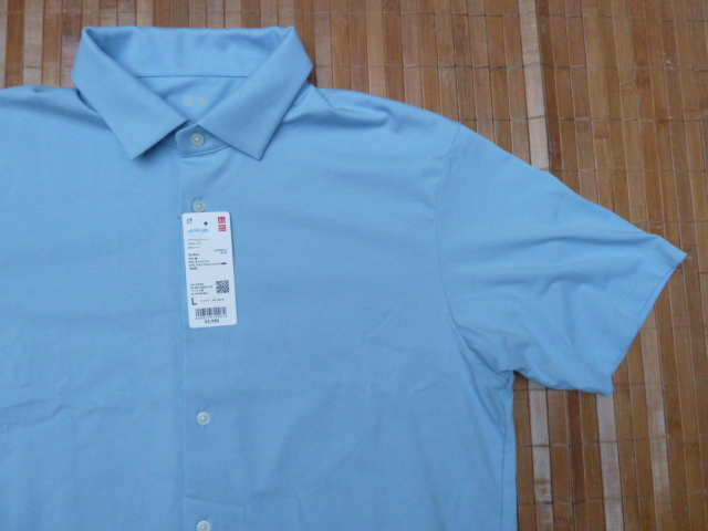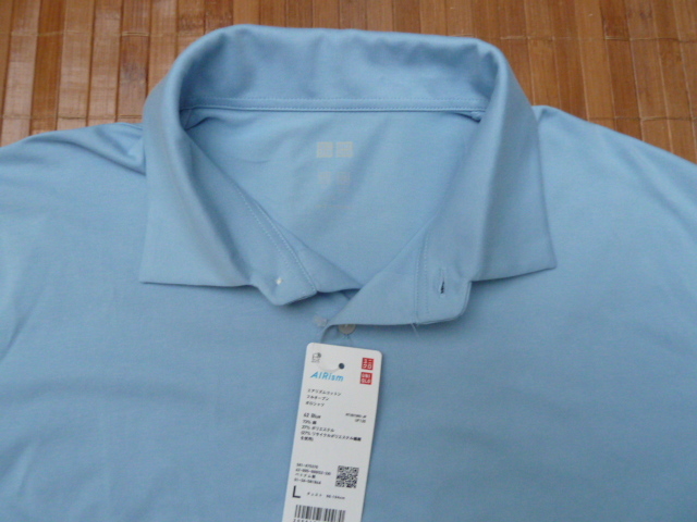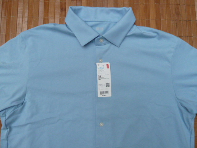 新品タグ付 UNIQLO 2025年夏モデル AIRism コットン フルオープン ポロシャツ 半袖 L Blue