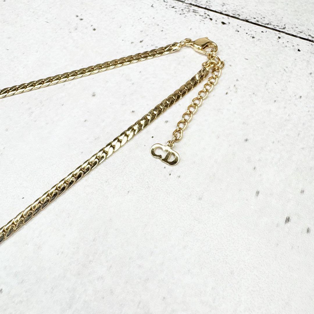 Christian Dior クリスチャンディオール チョーカー ネックレス リボン ラインストーン ストーン ペンダント ゴールド CD ロゴ チェーンネックレス 金