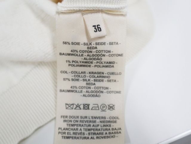 | 商品名 エルメスのシェーヌダンクル、半袖ニット 商品詳細 型番:4E2649DC 素材:シルク、コットン カラー:アイボリー サイズ:36 肩幅:約50cm 身幅:約44cm 袖丈:約22cm 着丈:約51cm 付属品:無し 商品状態 中古のお品です。Bランクです。 |