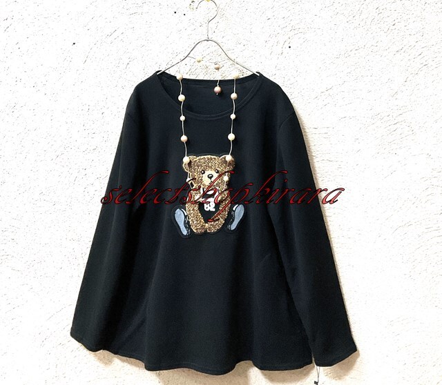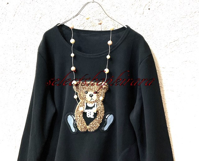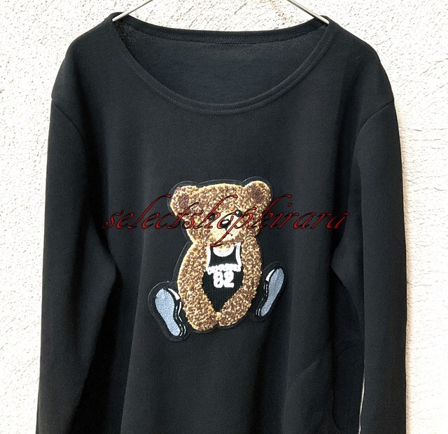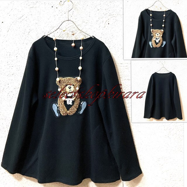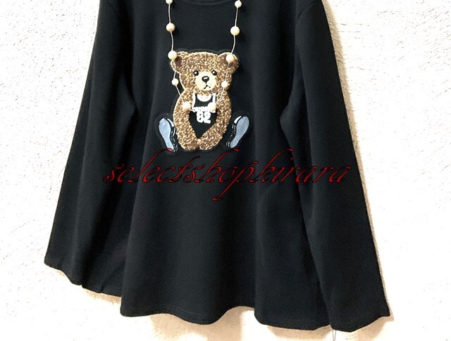 2025新作☆クマちゃんアップリケ刺繍☆ストレッチAラインカットソー☆F