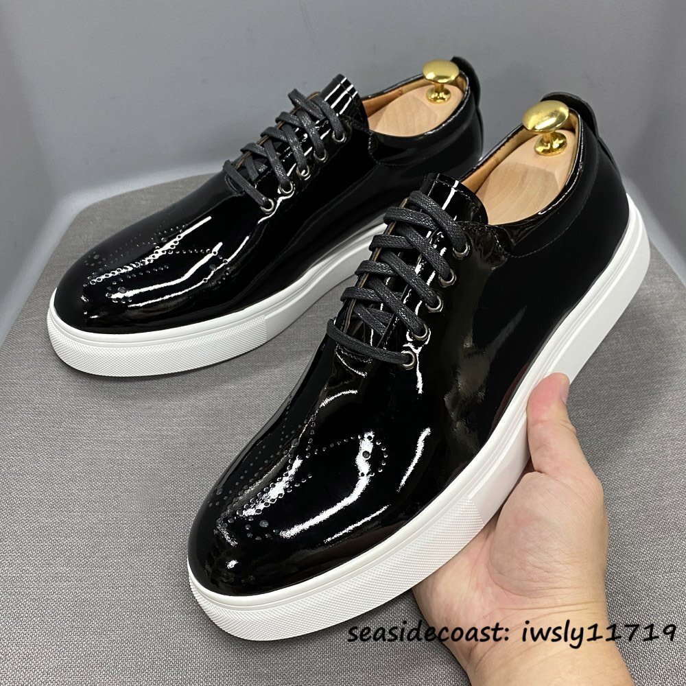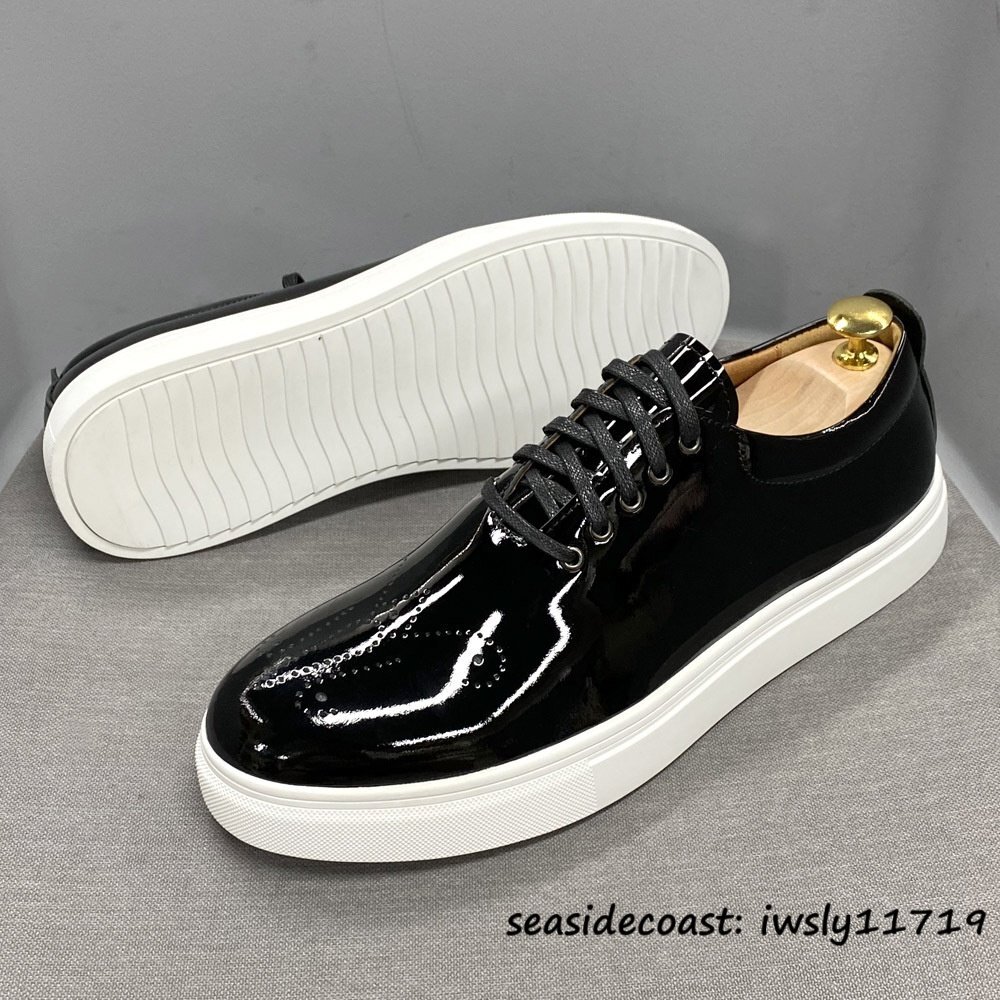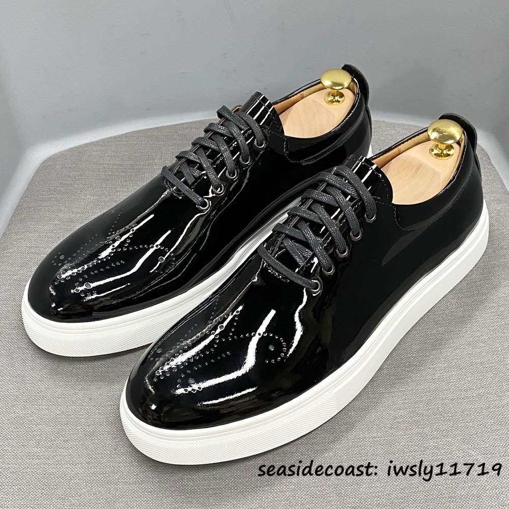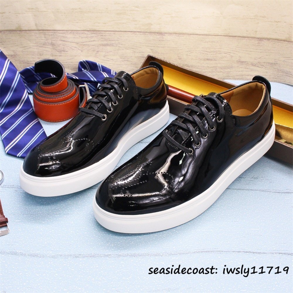 超美品★スニーカー 本革 レザーシューズ メンズ 職人手作り ビジネスシューズ 紳士靴 ローファー スリッポン 厚底 高級牛革 革靴 25.0cm