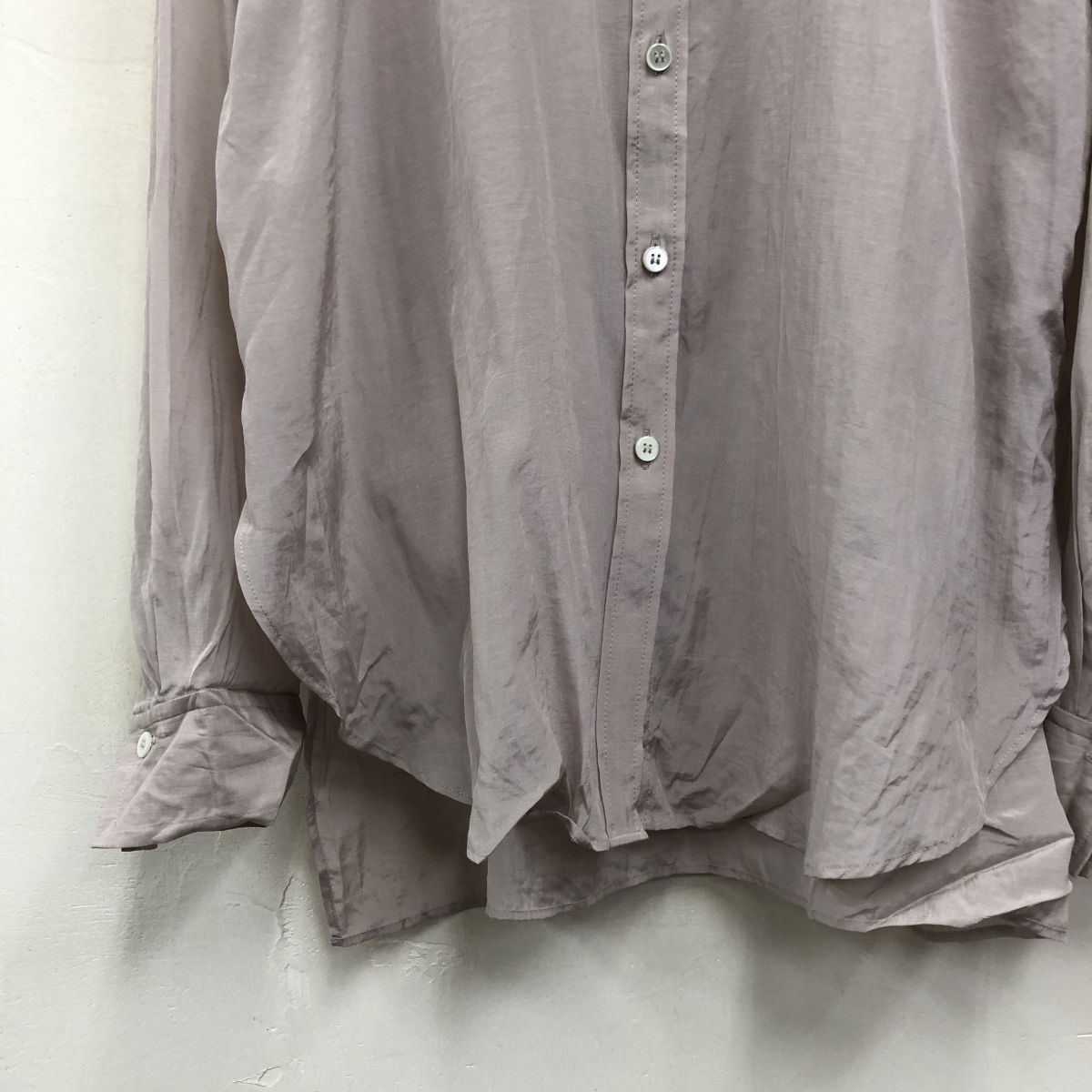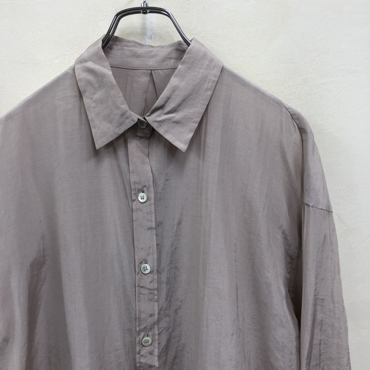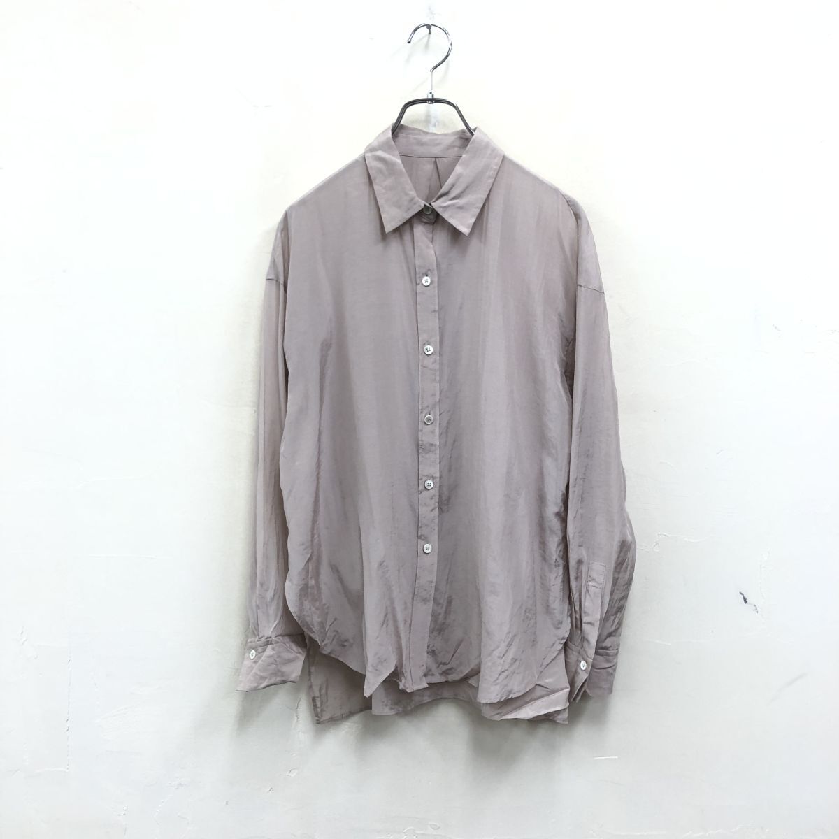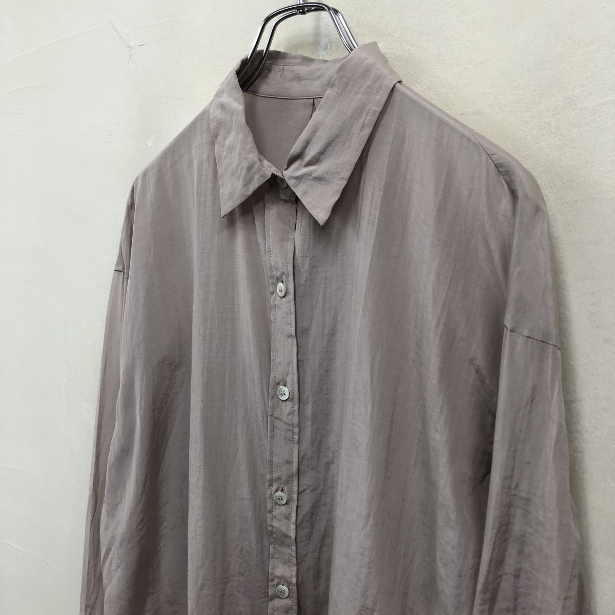 2K1382-Y◆NOBLE ノーブル 長袖シャツ ブラウス シアー 薄手 センタータック ラウンドヘム スリット レディース ◆ベージュ トリアセテート
