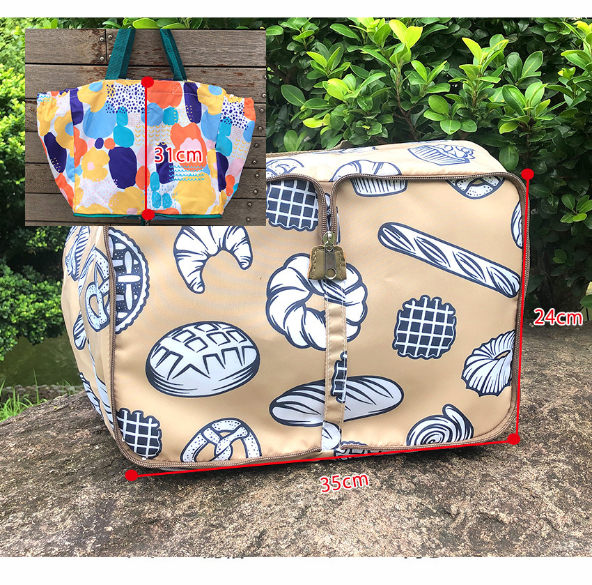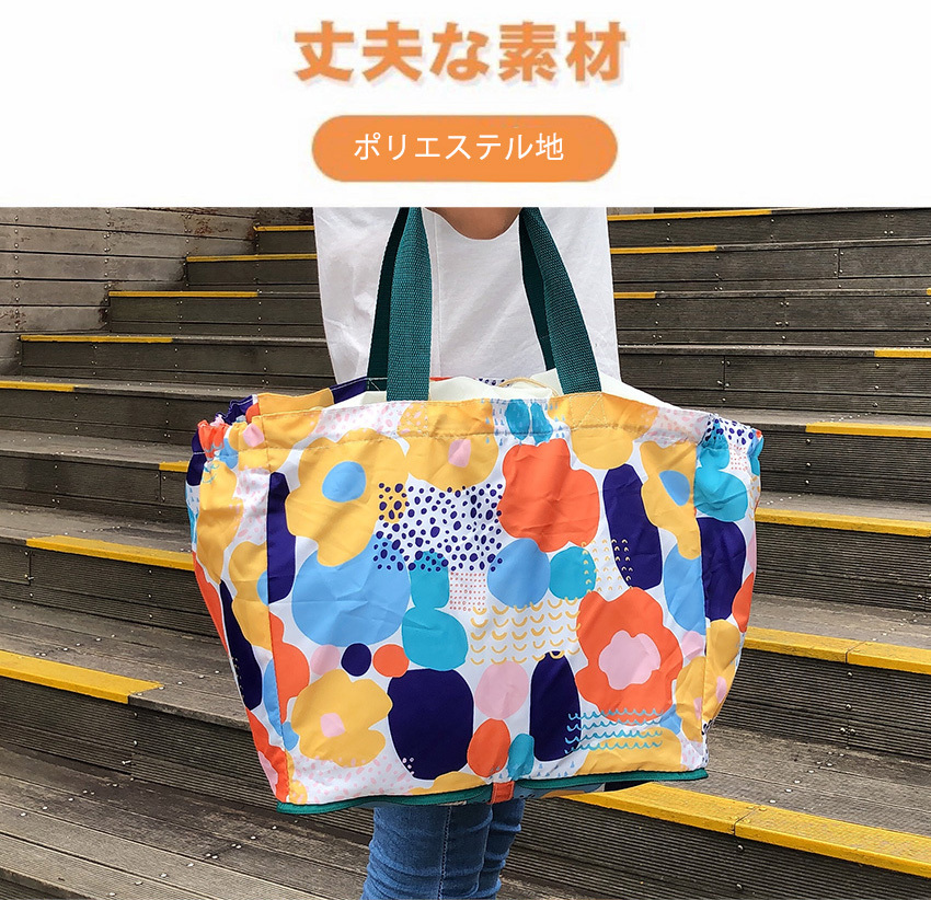 商品の詳細 横幅:約35cm 縦:約31cm マチ:約24cm 持ち手の長さ:約52cm 折りたたみ時:W約24cm×H約17cm ●素材 本体:ポリエステル 裏地:アルミシート ●重さ 約180g ●ポケット なし ●仕様 コンパクトの開閉:ファスナー 広げた状態の開閉:巾着 内側は保冷シートになっています コンパクト収納説明 1.底が収納ポーチになっているので、中央に向かって生地を折り曲げます。 2.折り曲げた生地を中に入れ込んで、ジッパーを閉めたらコンパクトの完成です。 商品の説明 買い物カゴにピッタリはまるサイズの保冷保温レジカゴバッグ。 折りたたみタイプで、コンパクトに収納できるので、持ち運びに便利です☆ 可愛い柄でプレゼントにもおすすです スーパーでたっぷり食材を買うと、お会計のあとに袋詰する作業も一苦労買い物カゴバッグがあれば、そんな手間を減らすことができるんです。 商品をレジに通す前に、まず空のカゴにこのバッグを設置。もしくは店員さんにバッグを手渡して設置してもらってもOK。あとは、店員さんがレジを通した 商品をバッグの中に詰めてくれるので、お会計が終わったらそのままバッグを持って帰ることができます。 薄手のエコバッグとは違うしっかりとした素材感や、アウトドア使いにも馴染むルックスも魅力。さらに内側は保冷素材なので、冷蔵食材も安心して持ち運べます。 使わないときはコンパクトに小さくたたんでスナップボタンで留めれば、持ち歩くときや使わない時もコンパクトに。 ※ 商品写真はできる限り実物の色に近づけるよう撮影しておりますが、お客様のお部屋の照明等により 実際の商品と色味が異なる場合がございます、 ご了承下さい。 また、折りたたんで発送する為、 多少折りシワが出来る可能性が御座います。 ご理解の程、宜しくお願い致します 。