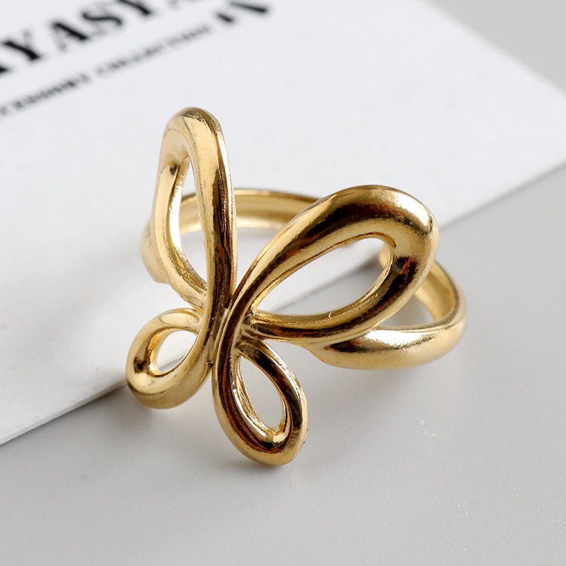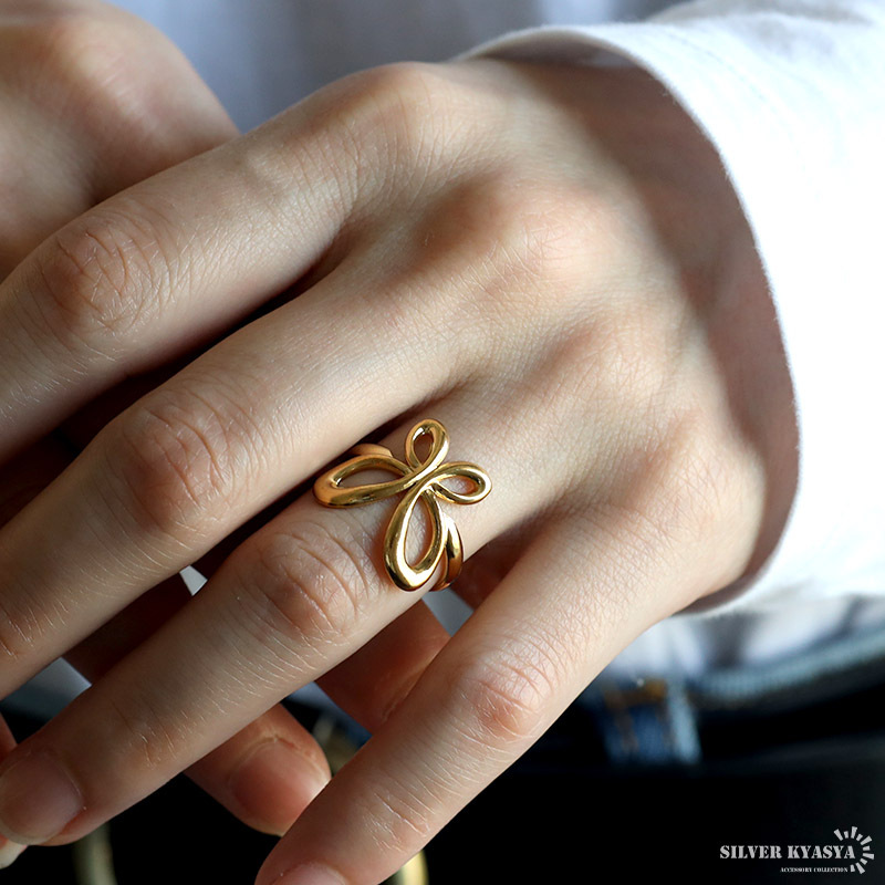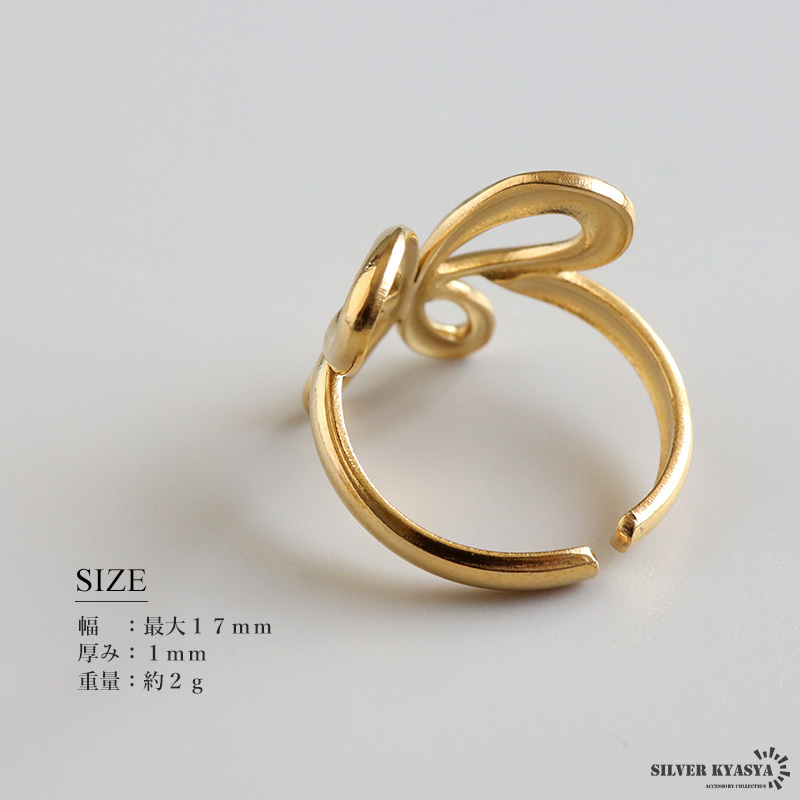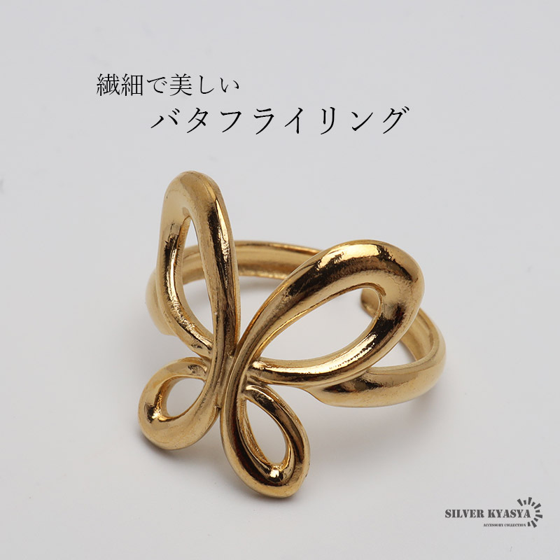 バラフライリング 蝶リング ゴールドリング 指輪 18KGP ゴールド ステンレス 個性的 レディース フリーサイズ 金属アレルギー対応