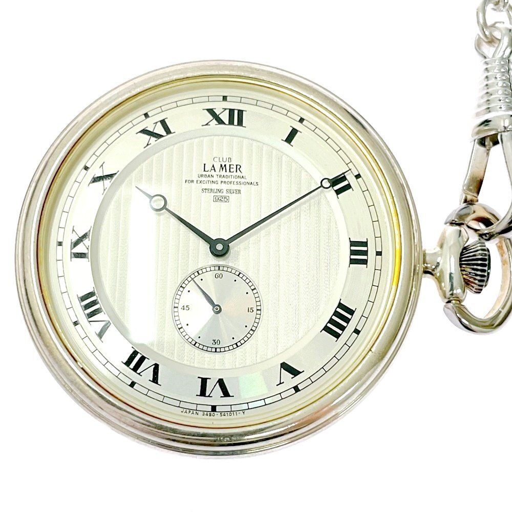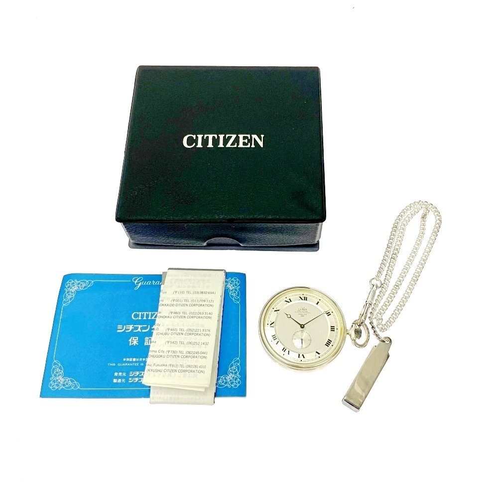 【1円スタート】【箱付き・訳あり品】CITIZEN クラブラメール スモセコ 925 シルバー文字盤 クオーツ 懐中時計 433006